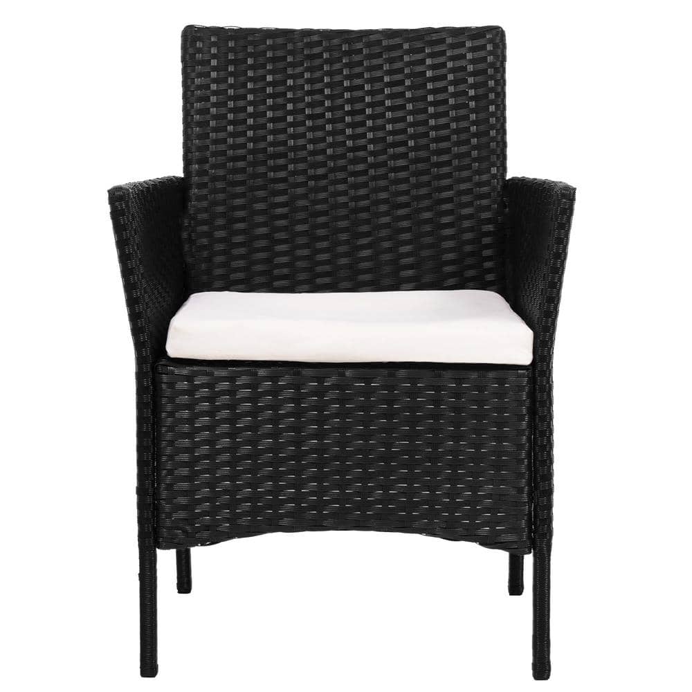 Set mobilier terasa, din tehnorattan, masa cu blat sticla securizata, 2 fotolii cu perne, negru Mob360