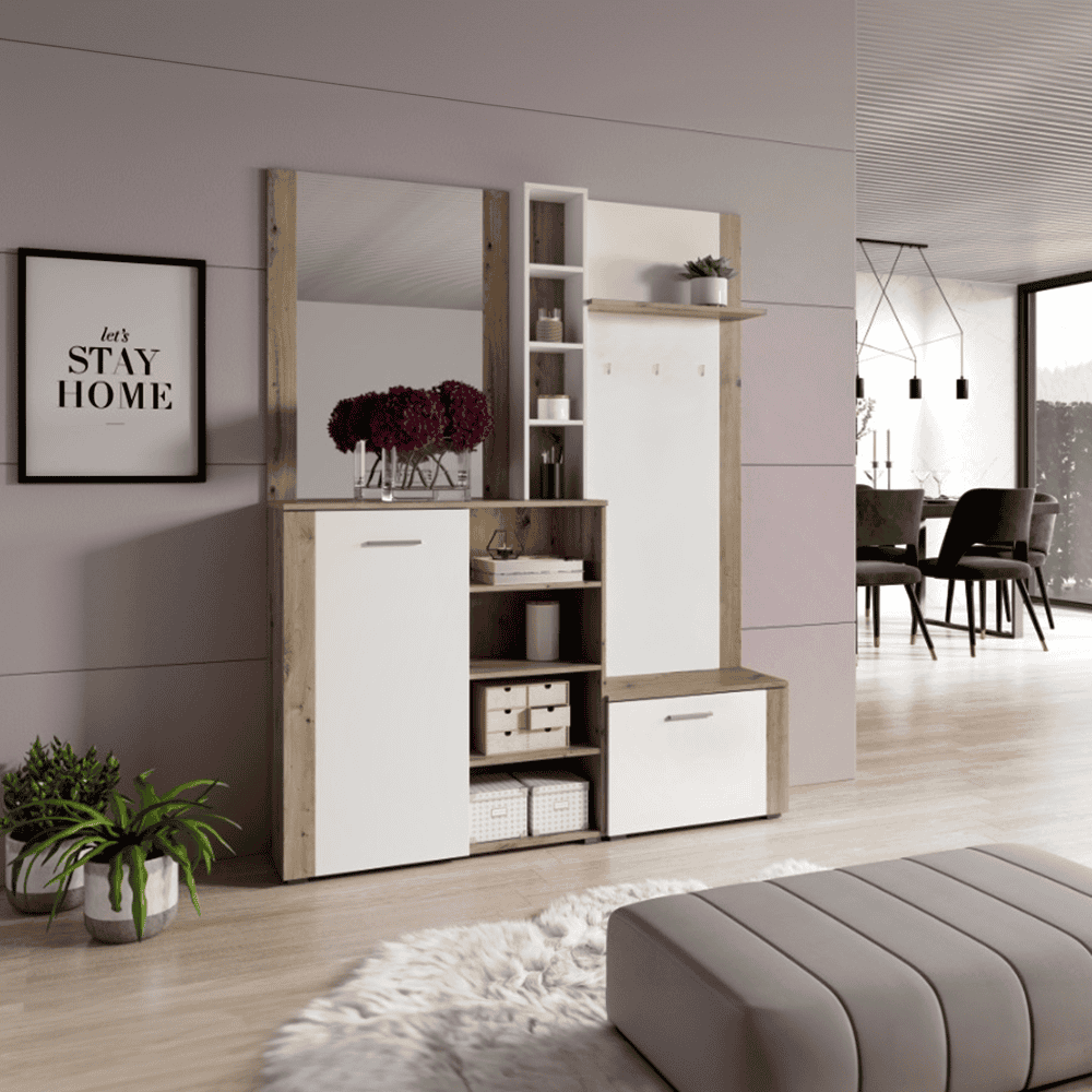 Set pentru anticameră, alb/stejar artisan, FANDU