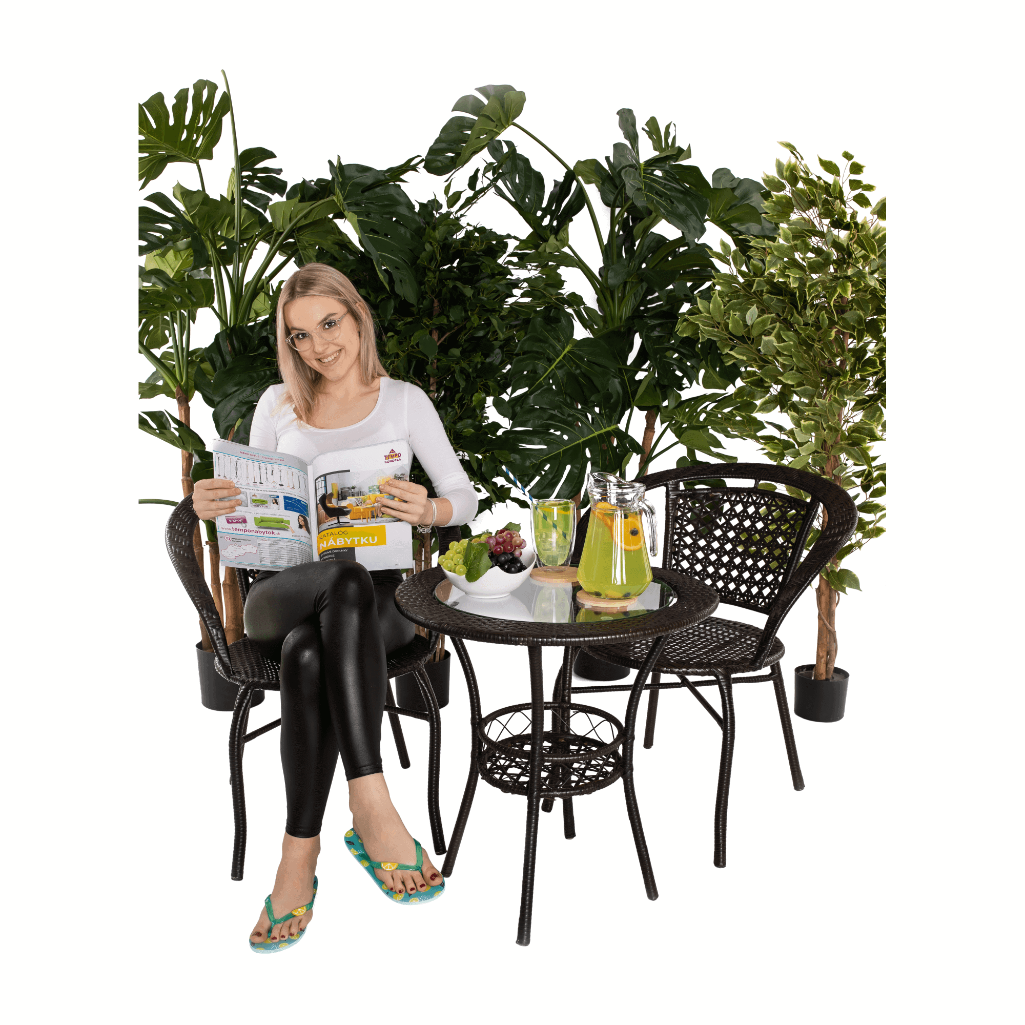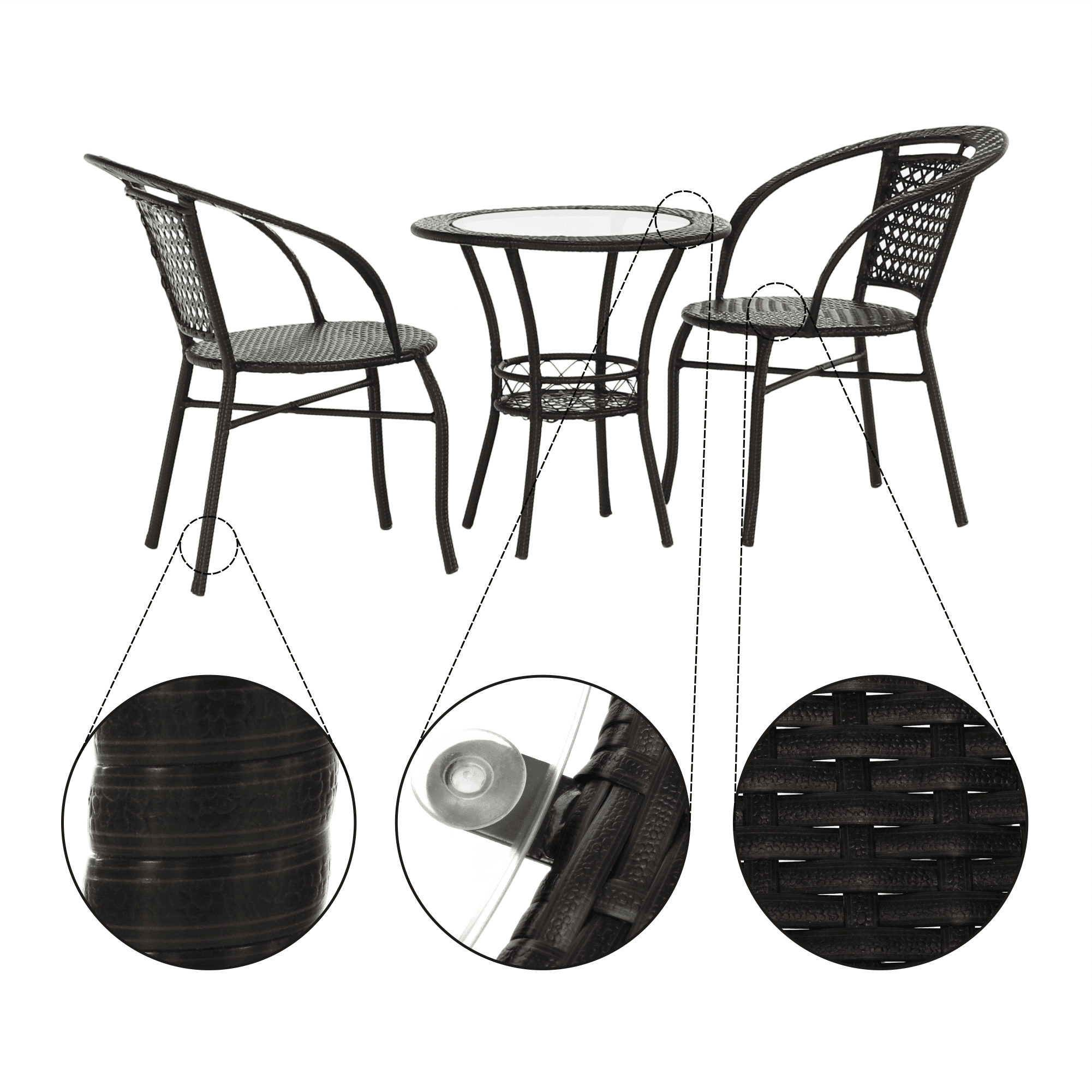 Material: ratan sintetic/oţel/sticlă temperată