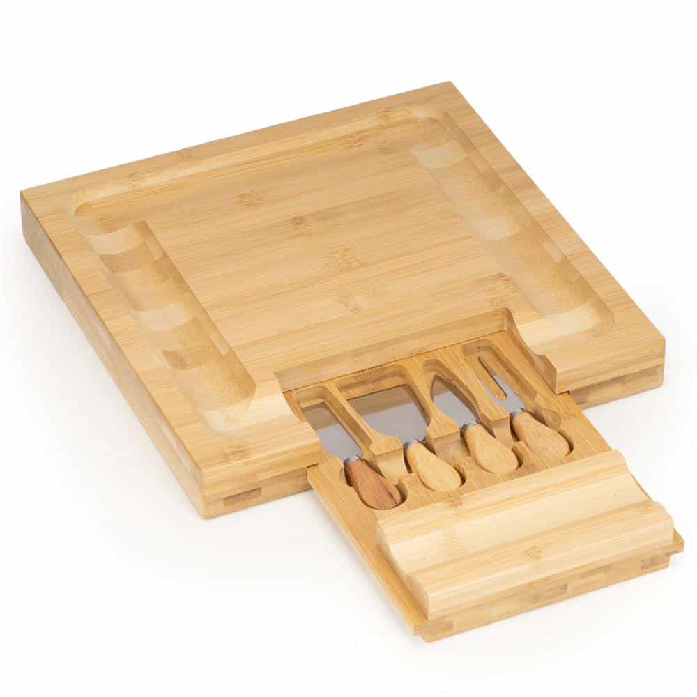 Set servire branzeturi cu platou din bambus si sertar glisant, 33x33x4 cm, maro natur Mob360
