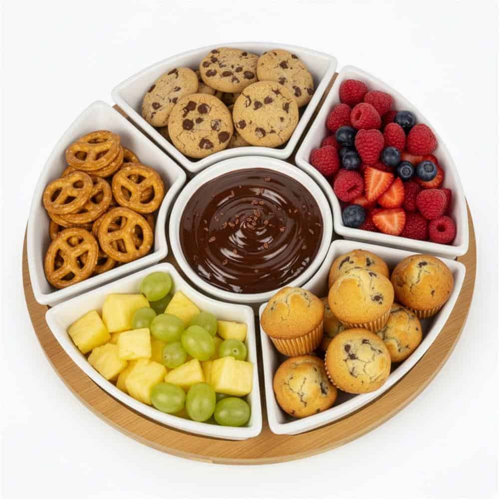 - Platou rotativ cu mecanism 360° pentru acces usor 6 compartimente si 6 boluri din portelan Design elegant din bambus natural Ideal pentru aperitive, snacks-uri si sosuri Organizare eficienta a alimentelor pe masa Produs sigur pentru contactul cu alimentele Continut pachet: 1 x platou rotativ 6 x boluri