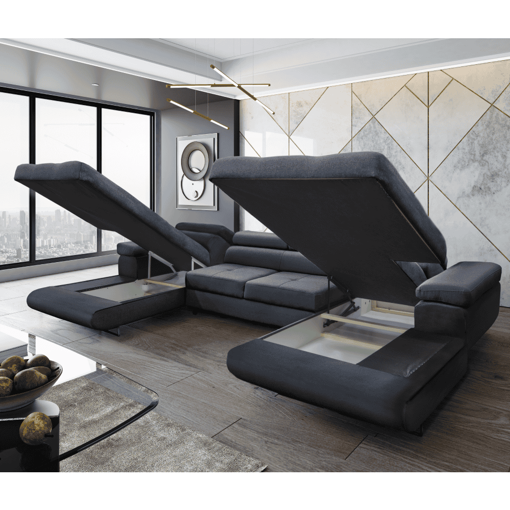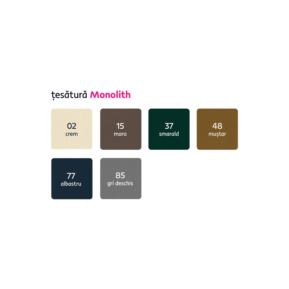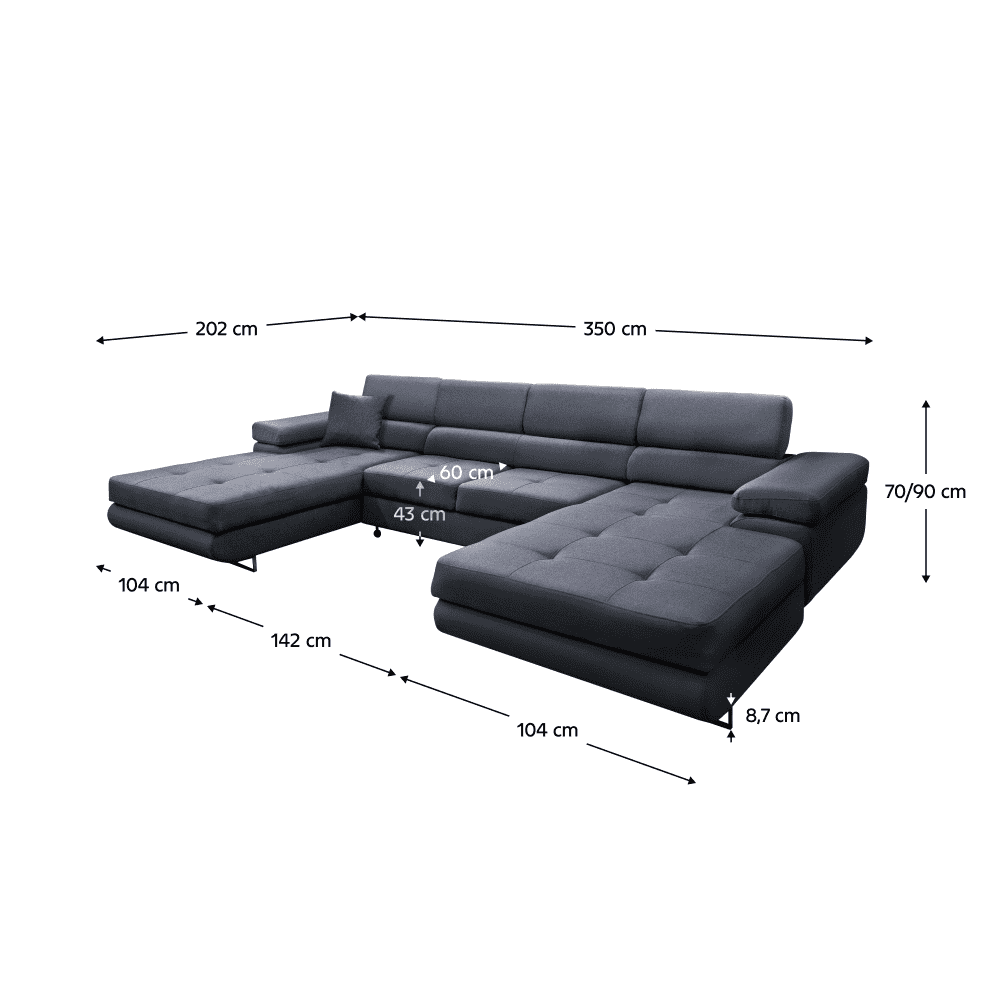 Material: ţesătură Monolith 97 Rezistenţa ţesăturii conform testului Martindale: 100.000 de cicluri de frecare Culoare: gri Dimensiuni (LxAxÎ): 350×202/202×70/90 cm Înălţime scaun: 43 cm Adâncime scaun: 60 cm Suprafaţa pentru dormit (LxL): 125×285 cm Înălţimea spaţiului inferior de la podea: 8,7 cm Capacitate de susţinere per persoană: 90 kg lăţime otoman: 104 cm Lăţime scaun: 142 cm Umplutură: spumă poliuretanică + spumă HR, Tapiţată complet, Colţar, Universală, Extensibilă, Cu spaţiu de depozitare, Cusătură decorativă a suprafeţei pentru şezut, 4 tetiere ajustabile, 6 grade de poziţionare a spătarelor, Picioare cu design modern, Material picioare: metal, Culoare picioare: argintie, Cu spaţiu de depozitare, Pernă inclusă în set, Livrată dezasamblată, Posibilitatea de a alege dintre 6 nuanţe de culoare ale ţesăturii Monolith, la preţul de 9.629,-. La o comandă individuală, este necesară o plată în avans de 20% din suma respectivă. După achitarea avansului, comanda dumneavoastră va intra în producţie. Termenul de livrare 8-10 săptămâni.