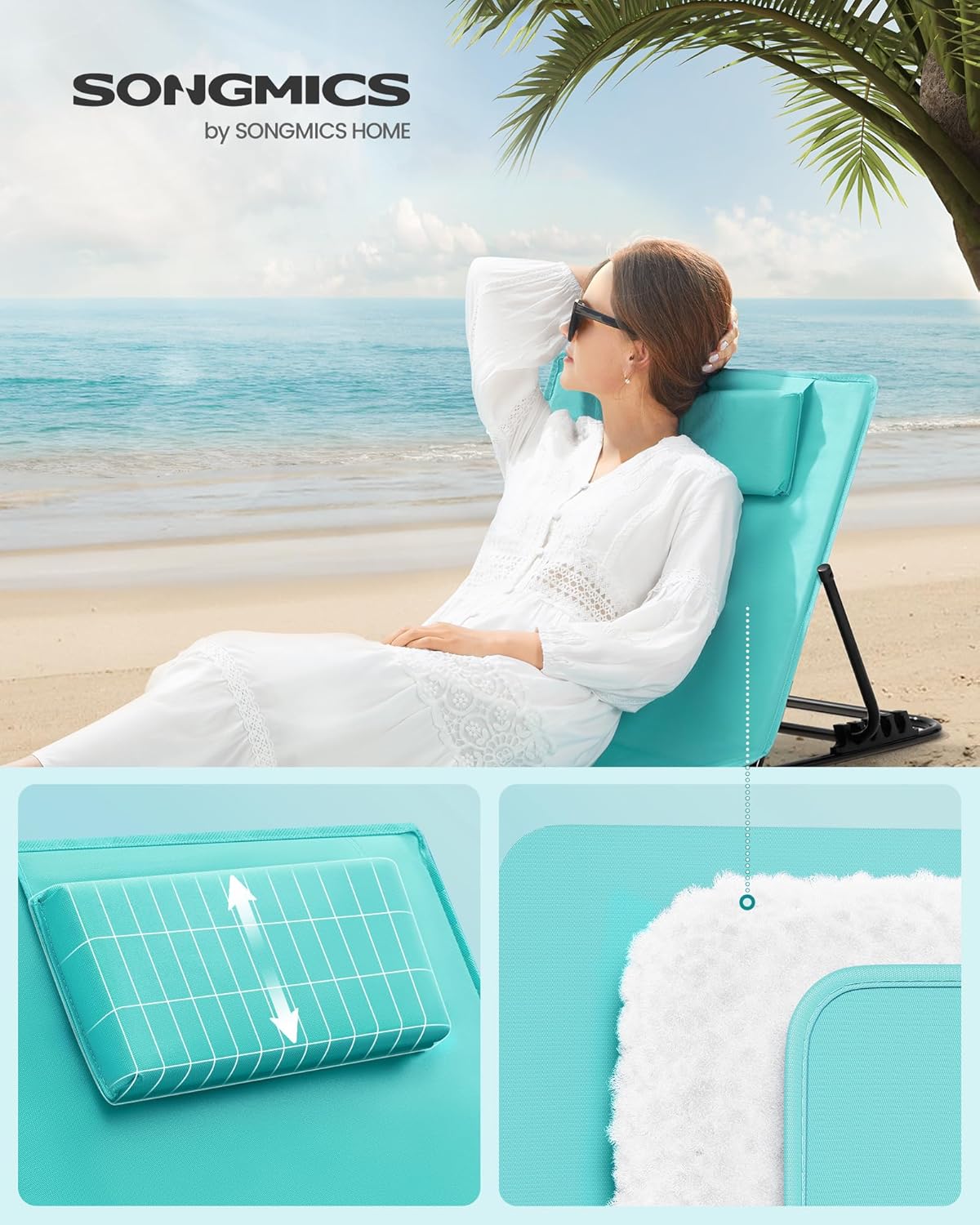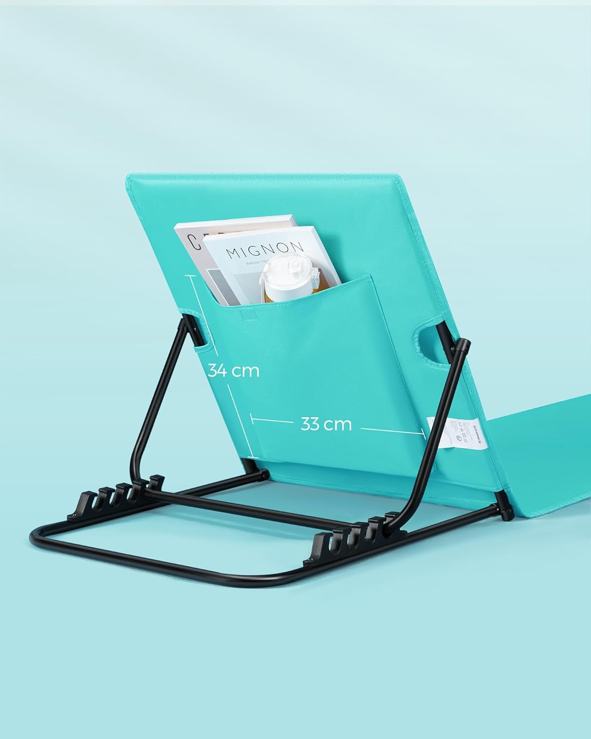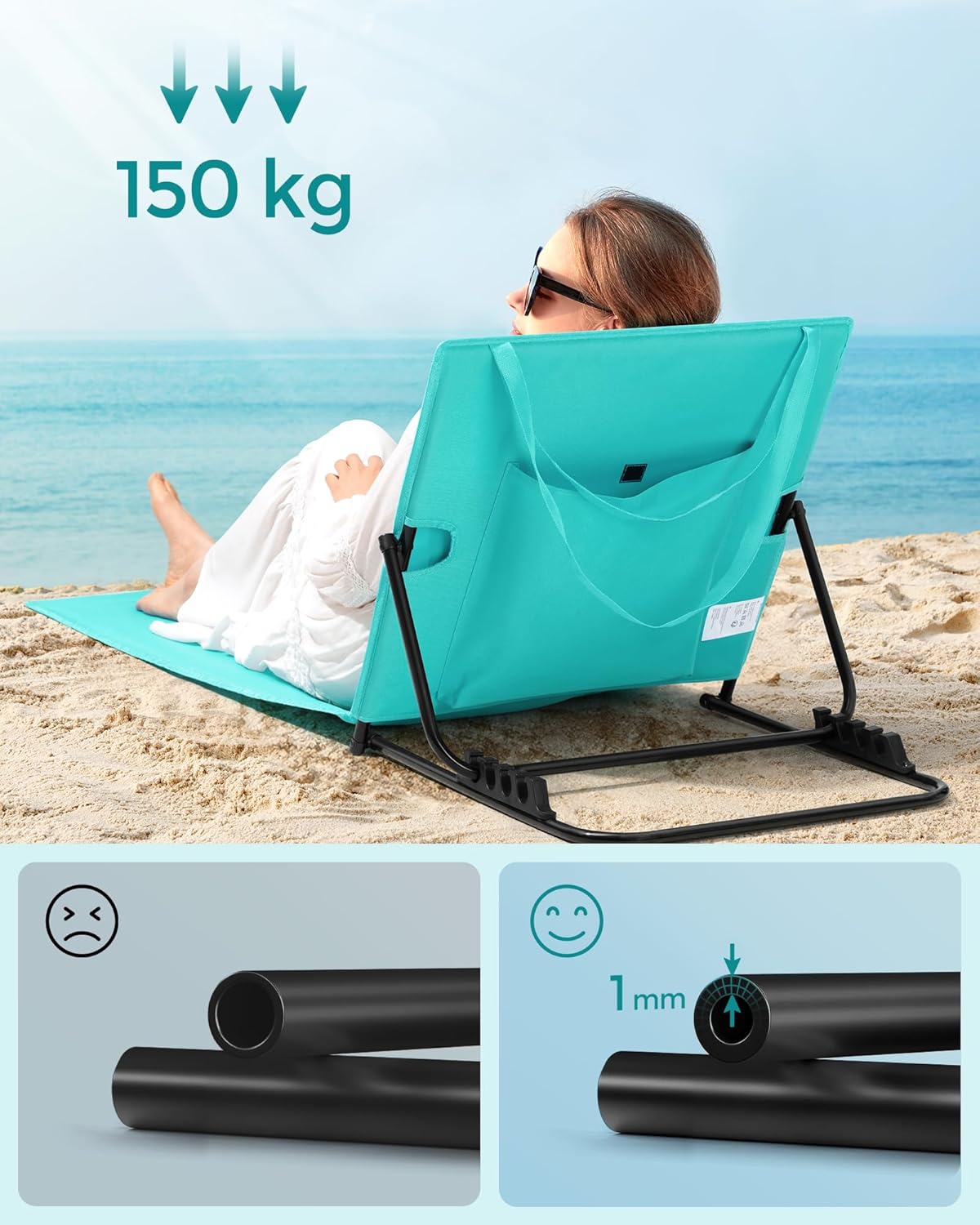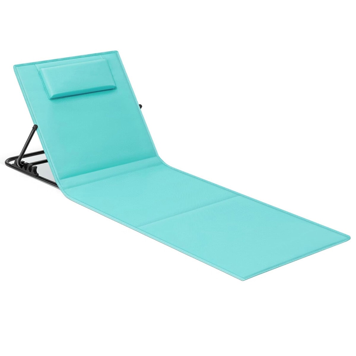 Sezlong plaja pliabil, spatar reglabil in 4 pozitii, tetiera, buzunar depozitare, 158×55 cm, albastru turqoise Mob360