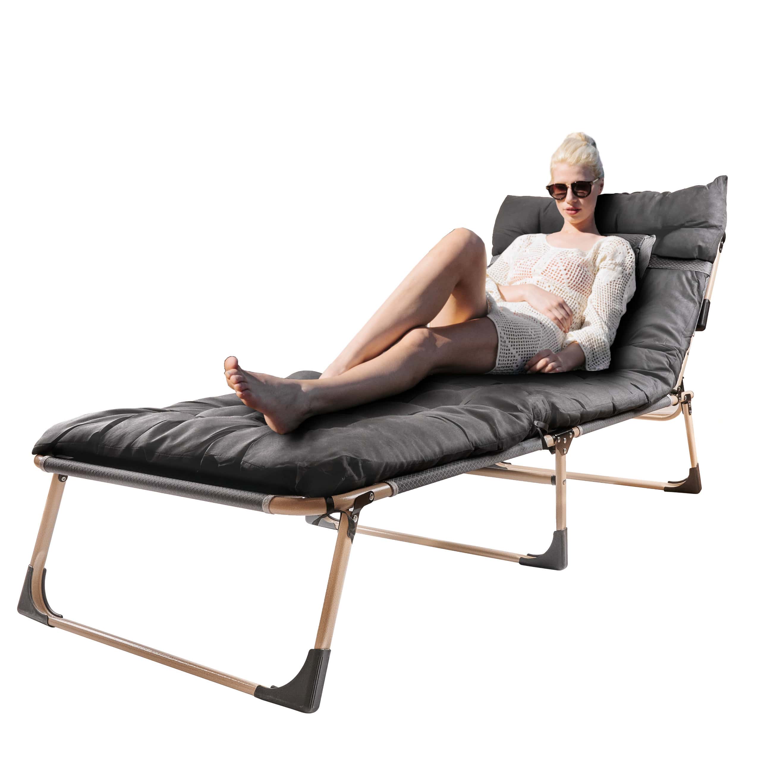 Sezlong pliabil cu 4 trepte, reglaj spatar, otel si material Oxford, 193x66x23 cm, gri Mob360
