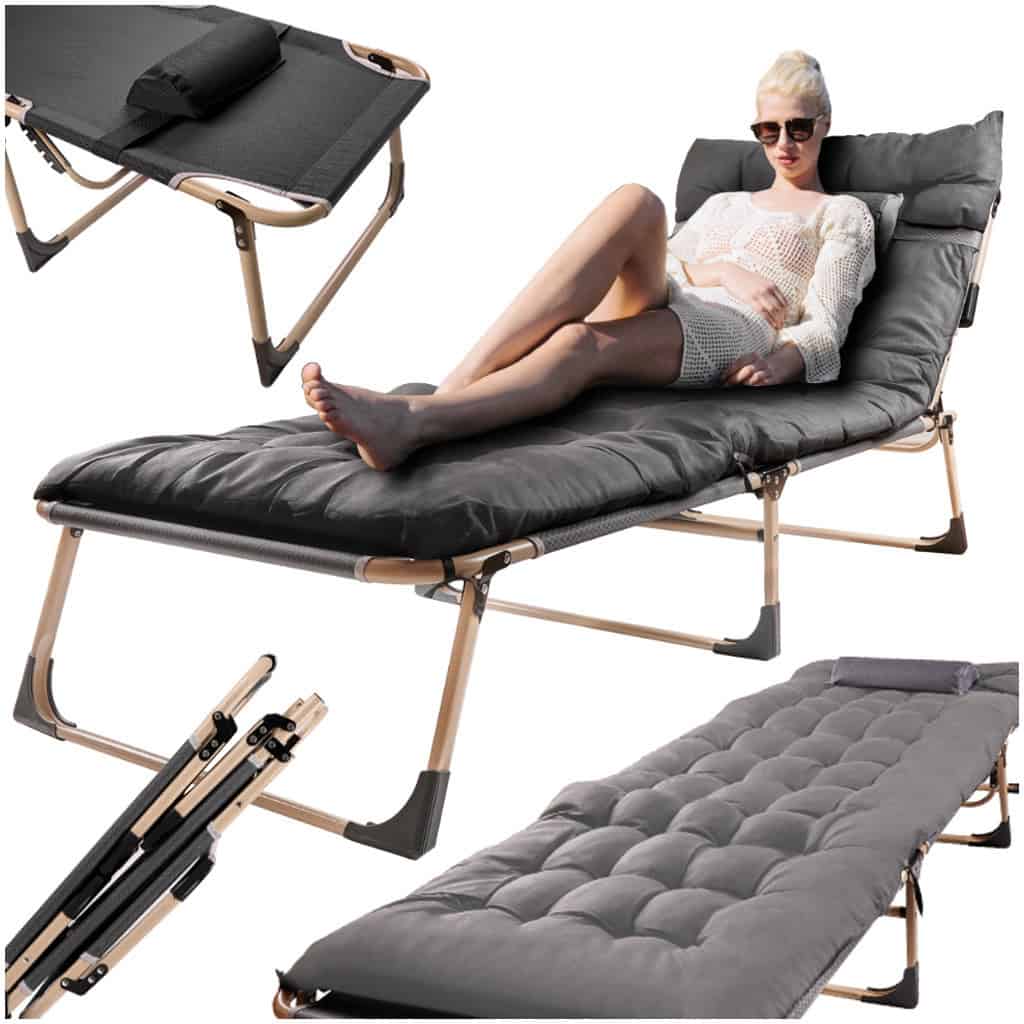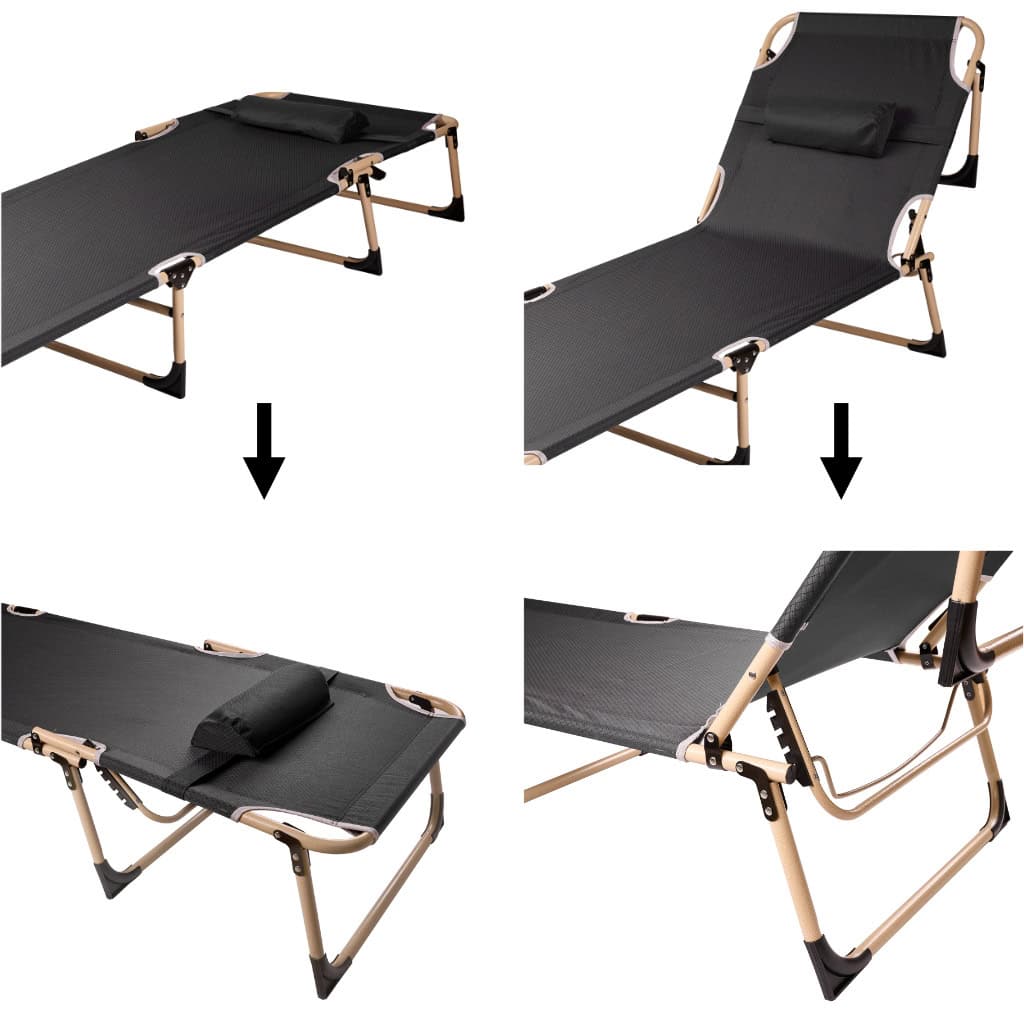 Sezlong pliabil cu 4 trepte, reglaj spatar, otel si material Oxford, 193x66x23 cm, gri Mob360 – produs disponibil în magazinul Mob360.