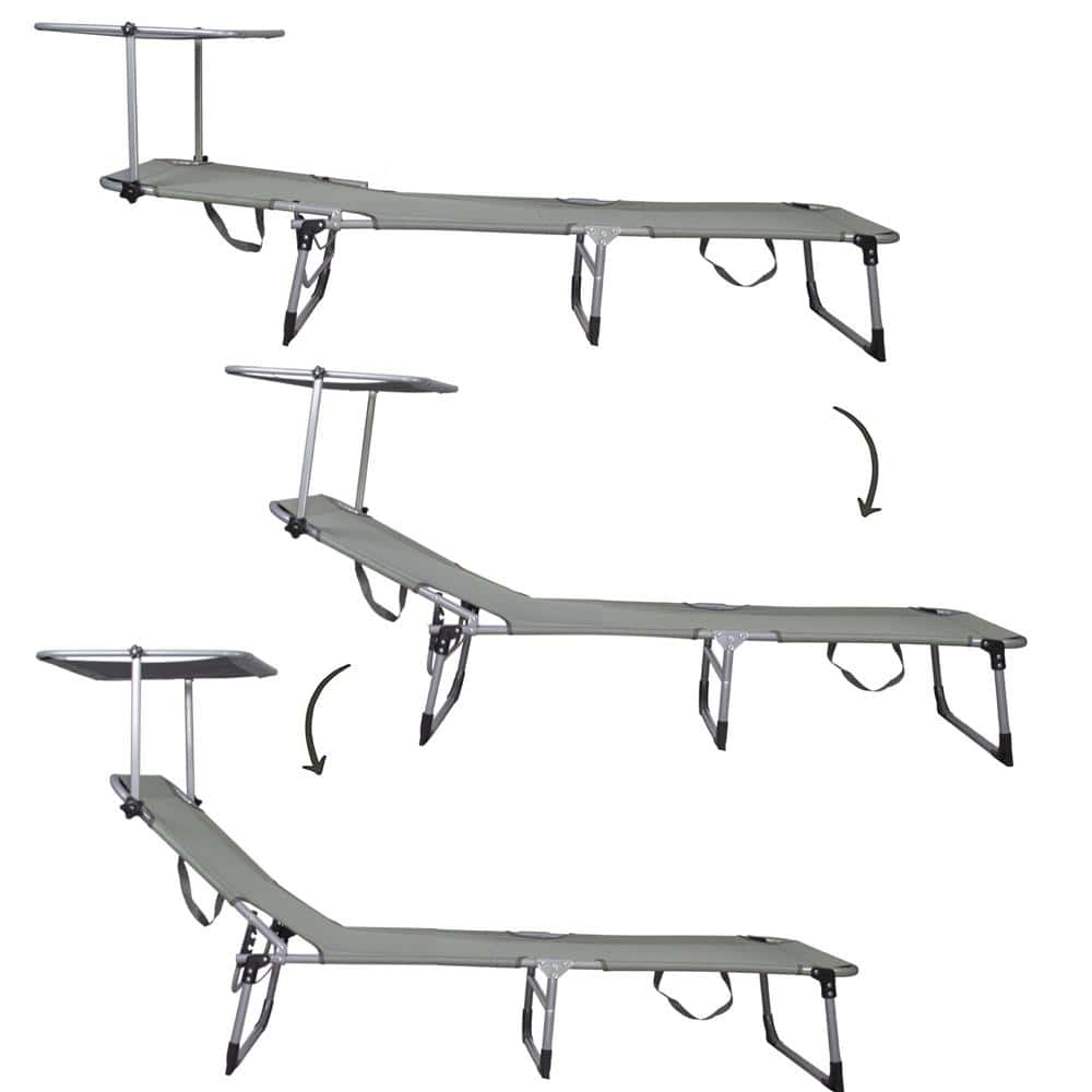 Sezlong pliabil cu parasolar, 188x57x38cm, sarcina 120kg, gri Mob360