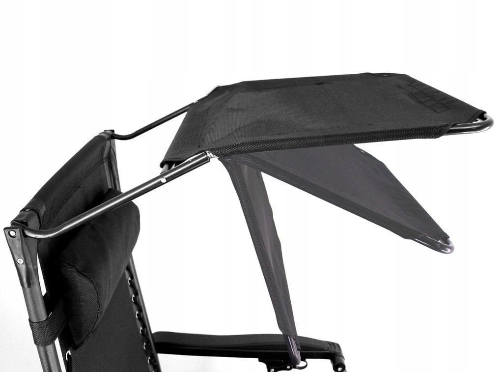 - Culoare neagra Parasolar cu reglarea unghiului Pozitia reglabila a sezlongului Masuta cu 4 suporturi functionale, astfel veti avea la indemana toate lucrurile necesare! Locurile pot fi folosite pentru: bautura – un ziar – o carte – un telefon