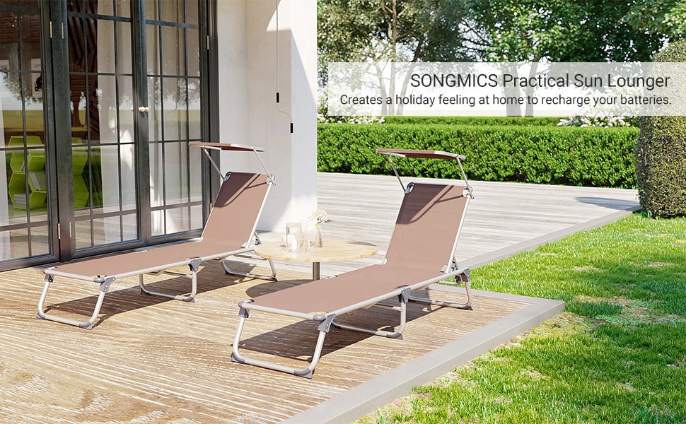 Sezlong pliabil, cu parasolar, spatar reglabil in 5 pozitii, maxim 150kg, 193x55x31cm, taupe Mob360