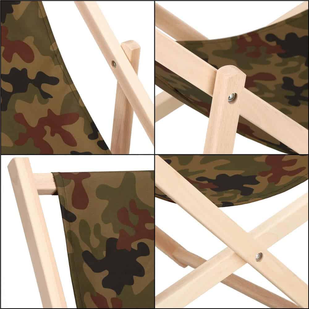 Sezlong pliabil din lemn de fag, autoasamblare, 120kg, camuflaj Mob360