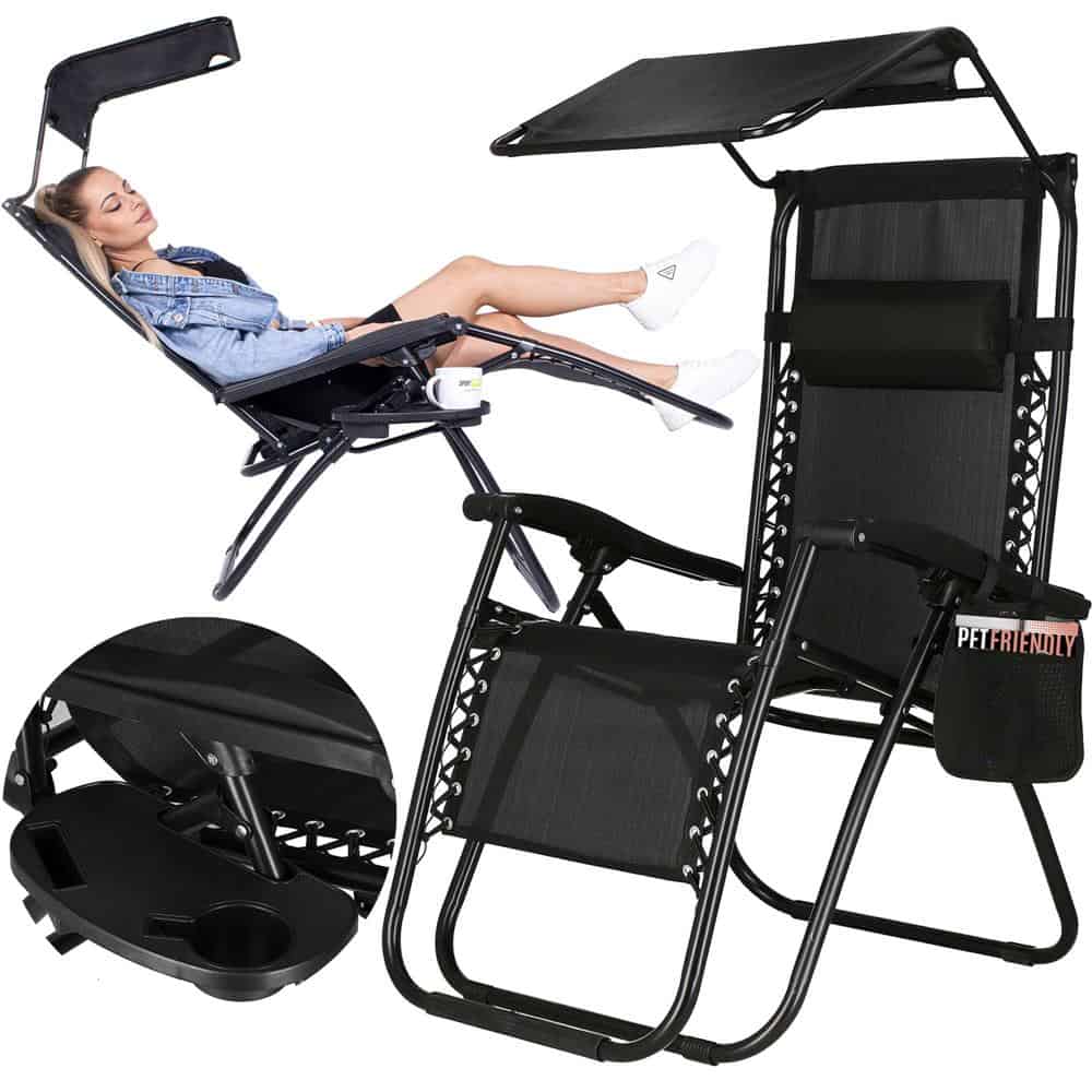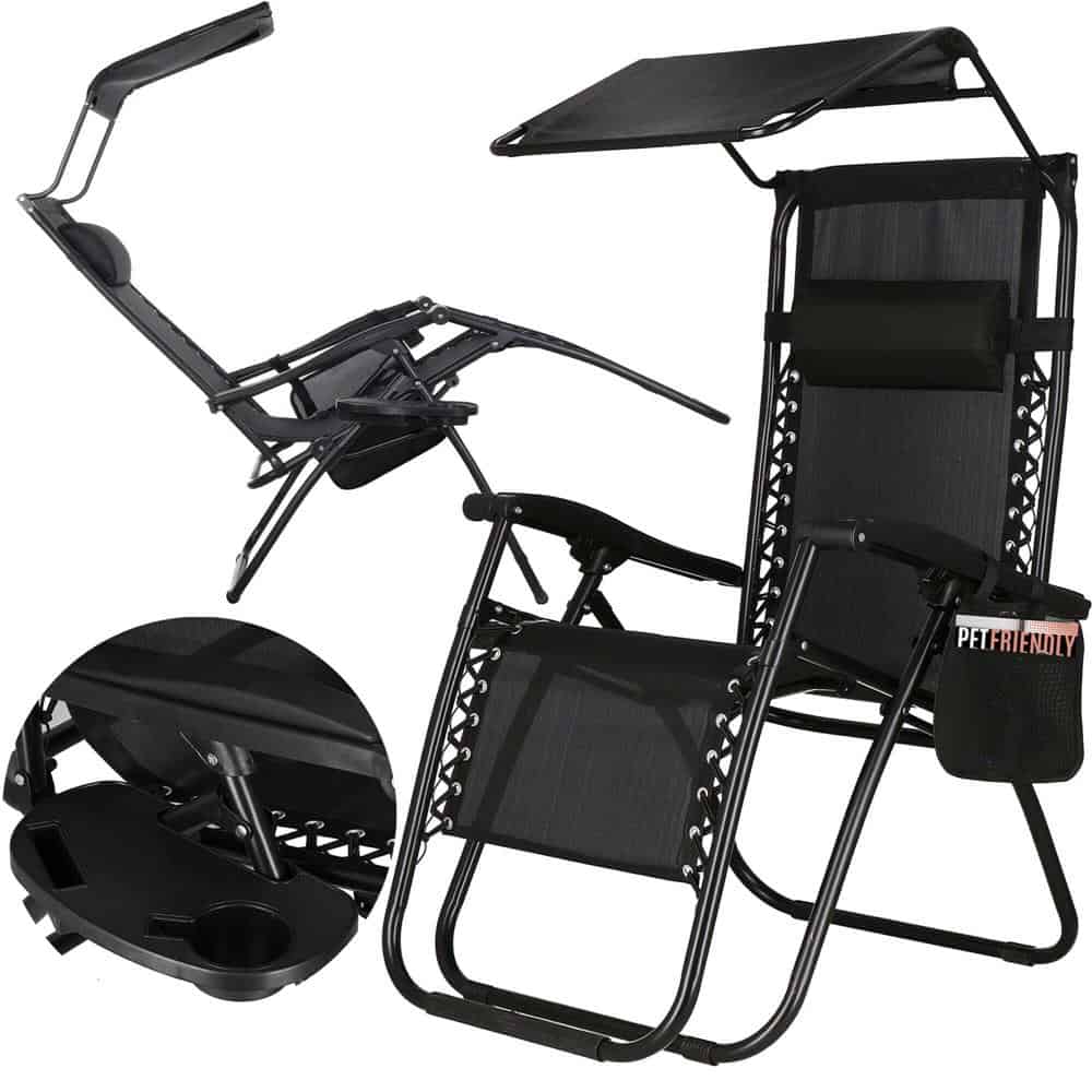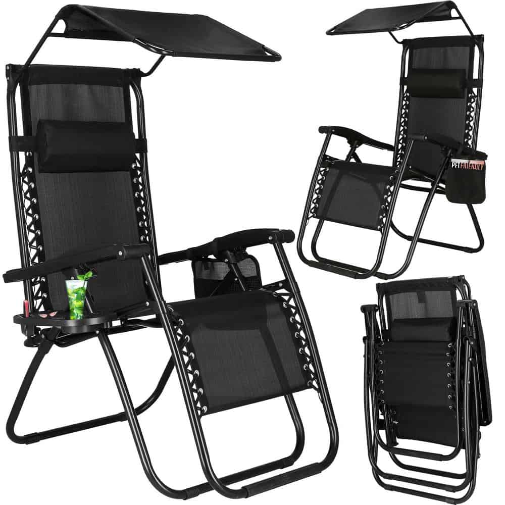 Sezlong pliabil GC3, Relax Zero Gravity cu parasolar, 175cm, negru Mob360 – produs disponibil în magazinul Mob360.