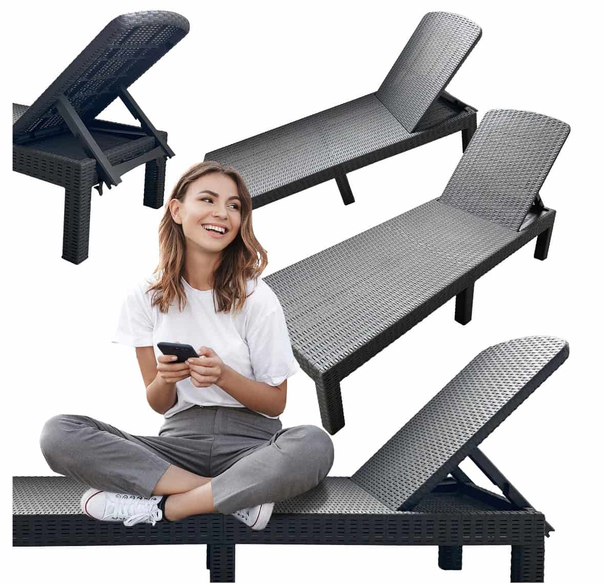 Sezlong pliabil tip valiza, 3 pozitii reglare, structura usoara pentru transport, 186x60x30 cm, gri Mob360