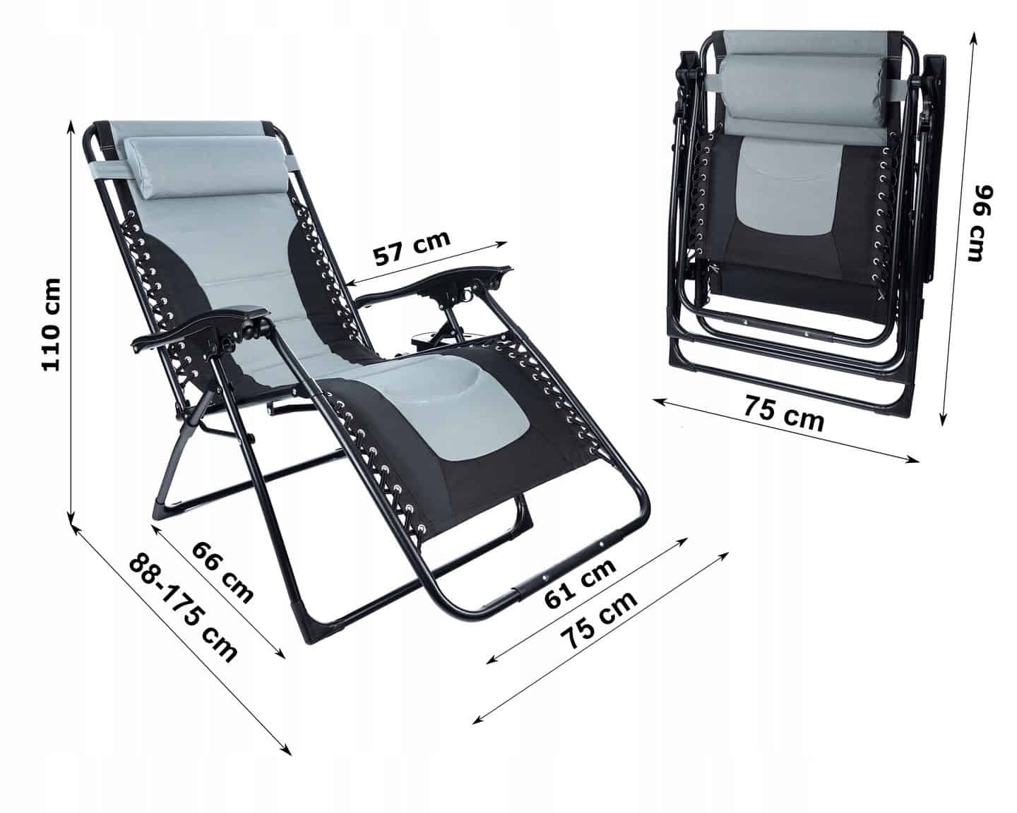 Sezlong scaun pliant plaja sau gradina, Siesta, gravitatie zero, cu tetiera, 175x75x110 cm, negri gri Mob360 – produs disponibil în magazinul Mob360.