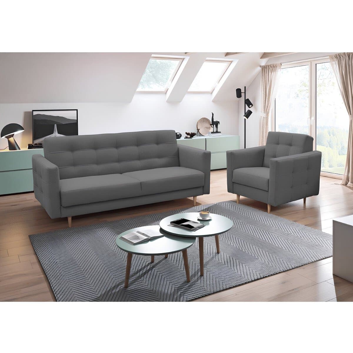 Şezut cu 3 locuri tapiţat, ţesătură gri închis, AMEDIA