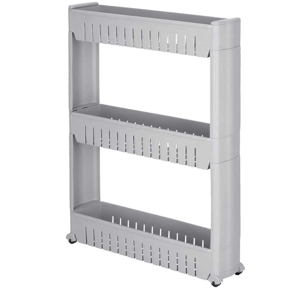 Sistem rafturi de depozitare cu roti pentru bucatarie sau baie cu 3 polite, 54x13x70cm, gri Mob360 – produs disponibil în magazinul Mob360.