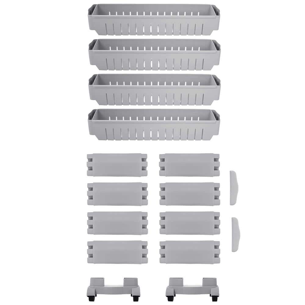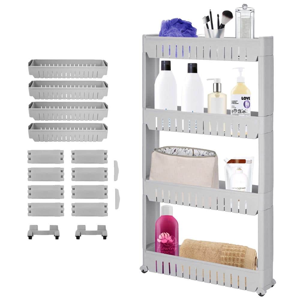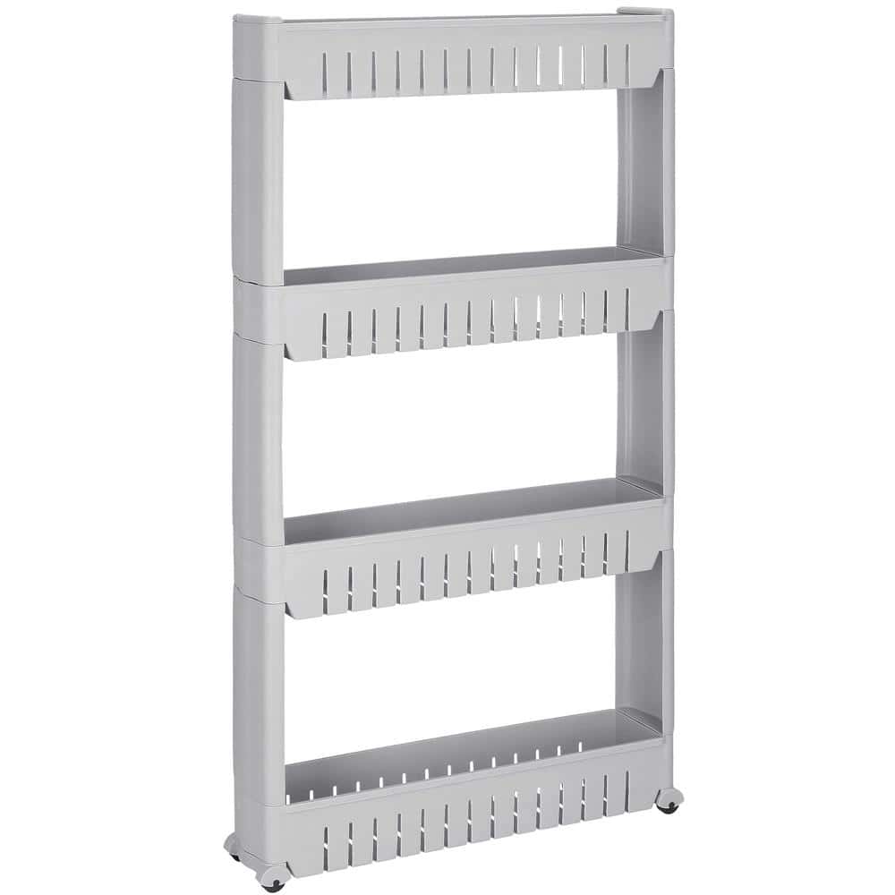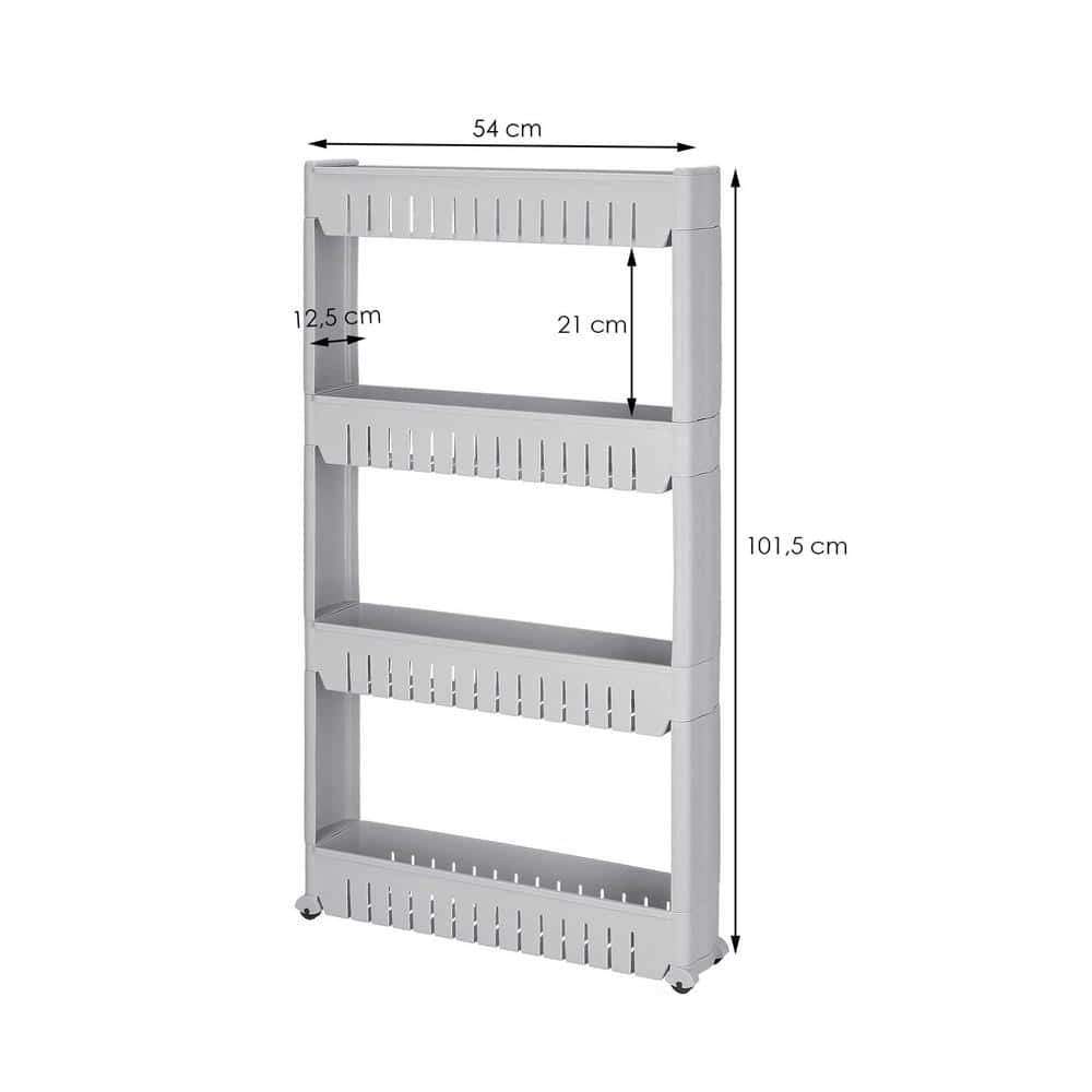 Sistem rafturi de depozitare cu roti pentru bucatarie sau baie cu 4 polite, 102x54x13 cm, gri Mob360