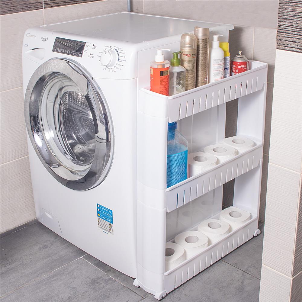 - Un dulap mobil pe roti va va ajuta sa utilizati spatii inguste in baie, bucatarie, camara sau alta camera. Trei rafturi spatioase va asigura ca pastrati cele mai necesare lucruri in apropiere. Fabricat din materiale de cea mai buna calitate, durabil si rezistent la temperaturi ridicate, va servi foarte mult timp. Multifunctionalitate Rack-ul pe roti este perfect pentru multe intrebuintari. Va depozita produsele cosmetice, balsamul de rufe, detergentul de spalat sau o multime de alte lucruri. Pe de alta parte, in bucatarie, va fi minunat pentru amenajarea unui loc pentru bauturi sau alte produse alimentare. Asezandu-l in camera unui copil, acesta se va potrivi animalelor de plus si alte jucarii pe rafturi. Datorita functionalitatii multiple a acestui dulap, puteti decide singur unde va va ajuta sa gestionati practic un spatiu ingust. Utilizare confortabila Patru roti faciliteaza mutarea raftului. Datorita acestui fapt, schimbarea locului este foarte usoara. In plus, plierea si demontarea acestuia sunt intuitive. Pentru a-l putea folosi, este suficient sa-l pliati in trei pasi. Spatiu suplimentar utilizabil Datorita utilizarii unui raft mobil, puteti castiga spatiu suplimentar intr-un loc ingust, de exemplu intre un frigider si un dulap sau intre o masina de spalat si un perete. Acesta va gazdui multe lucruri care sunt necesare in fiecare zi. Parametri: