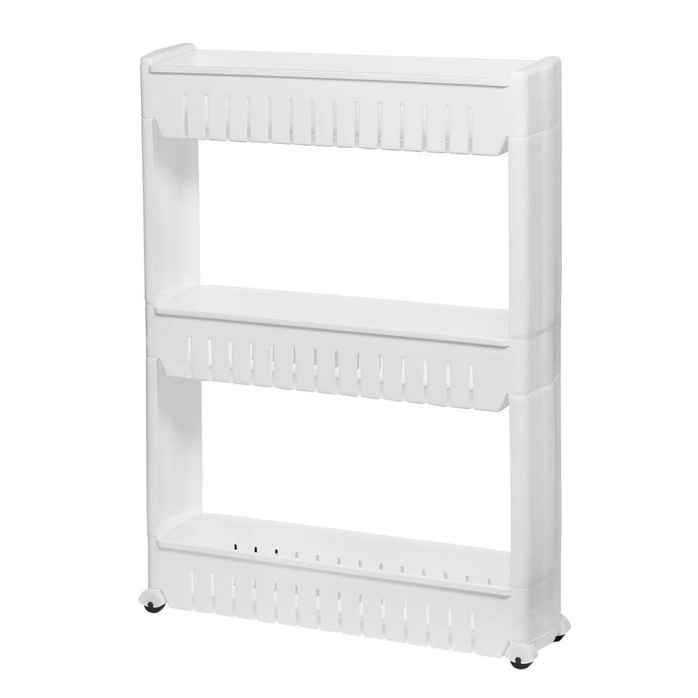 Sistem rafturi de depozitare HA110 cu roti pentru bucatarie sau baie cu 3 polite, alb Mob360