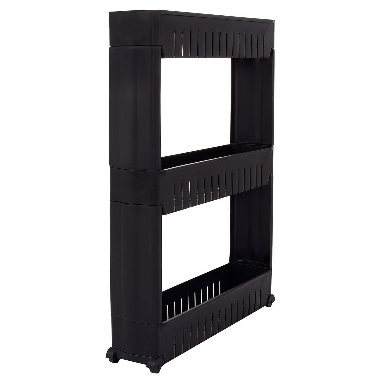 Sistem rafturi de depozitare HA116 cu roti pentru bucatarie sau baie cu 3 polite, negru Mob360