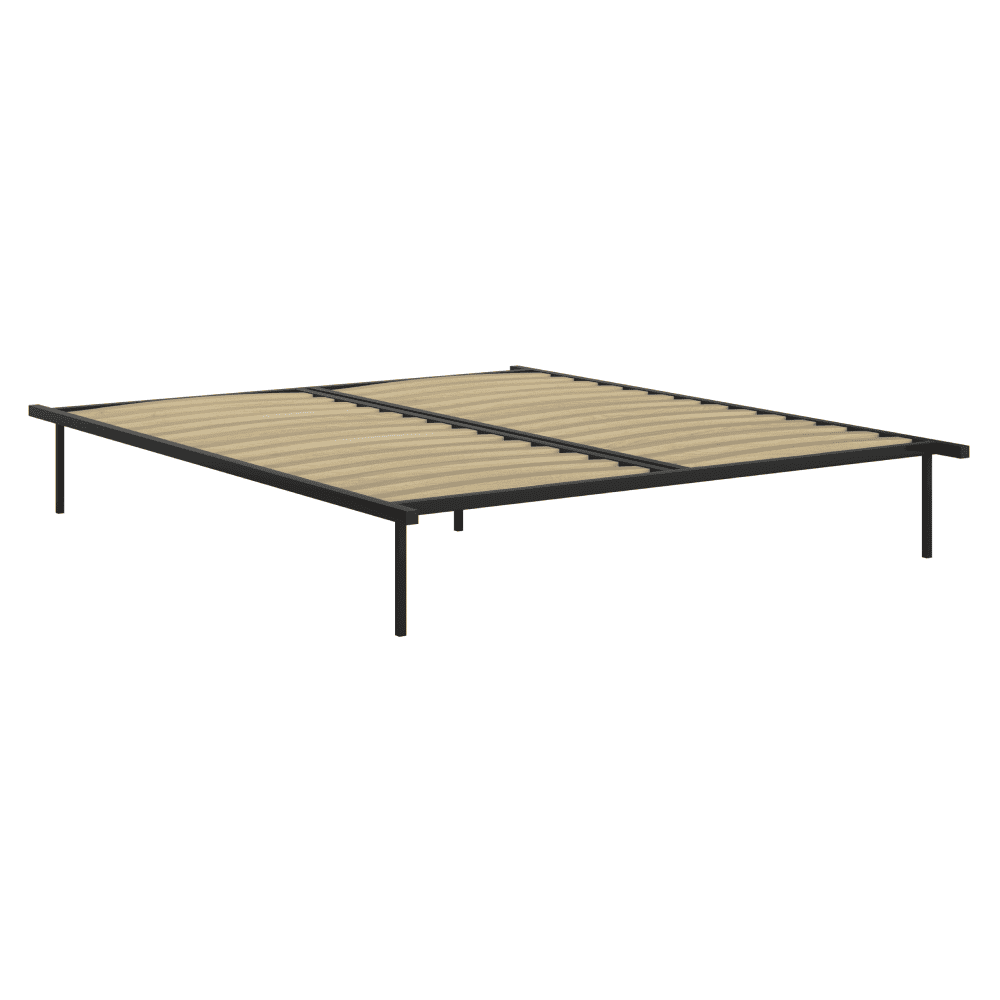 Material: metal/lemn Culoare: neagră/naturală Dimensiuni (lxAxh): 160x200x28,4 cm somiera este autoportant 14 lamele Lăţime lamele: 5,3 cm Grosimea lamelelor 7,8-8,1 cm. Spaţiul dintre lamele: 5,3 cm Portanţă pe persoană: 120 kg Potrivit pentru toate tipurile de saltele Posibilitate de achiziţionare a unei saltele din oferta noastră Livrat cu picior de sprijin central Posibilitate de utilizare ca pat separat Livrat dezasamblat