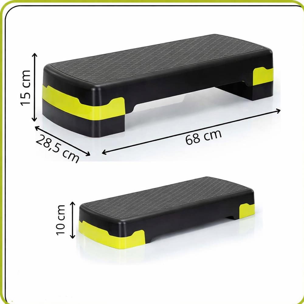 Stepper aerobic, ajustabil in 2 trepte, antiderapant, maxim 350 kg, 68x29x15 cm, negru si verde Mob360