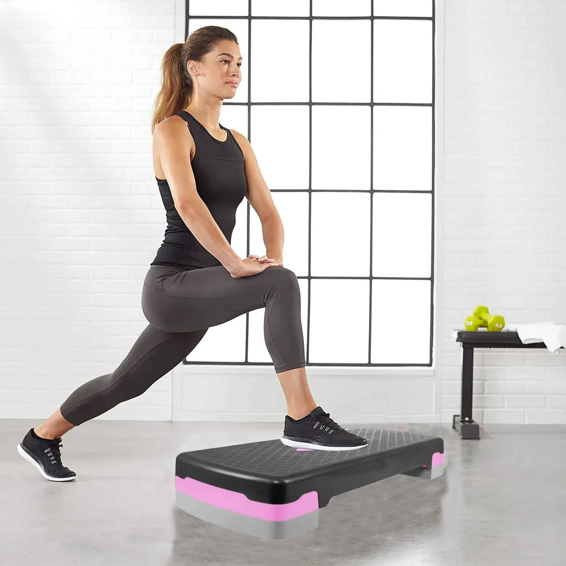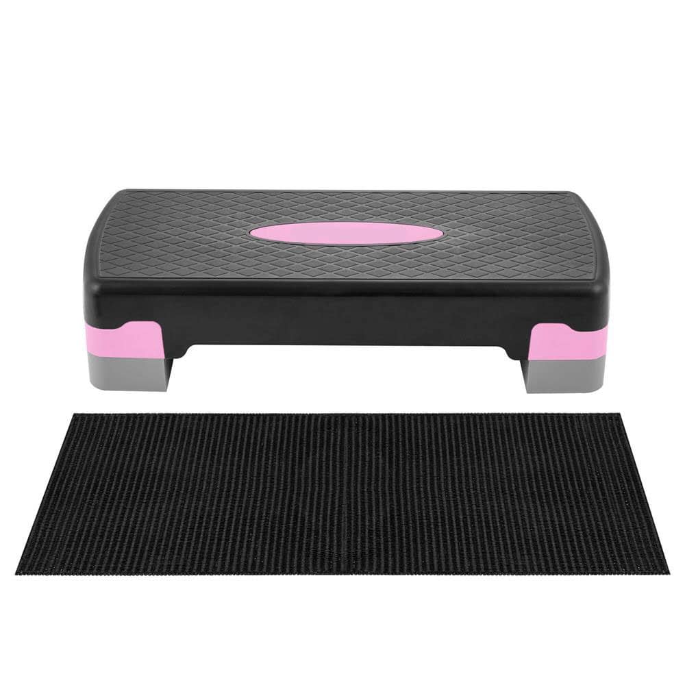 Stepper aerobic, ajustabil in 2 trepte, gri/roz, greutate maxima 250 kg, cu covoras de protectie Mob360