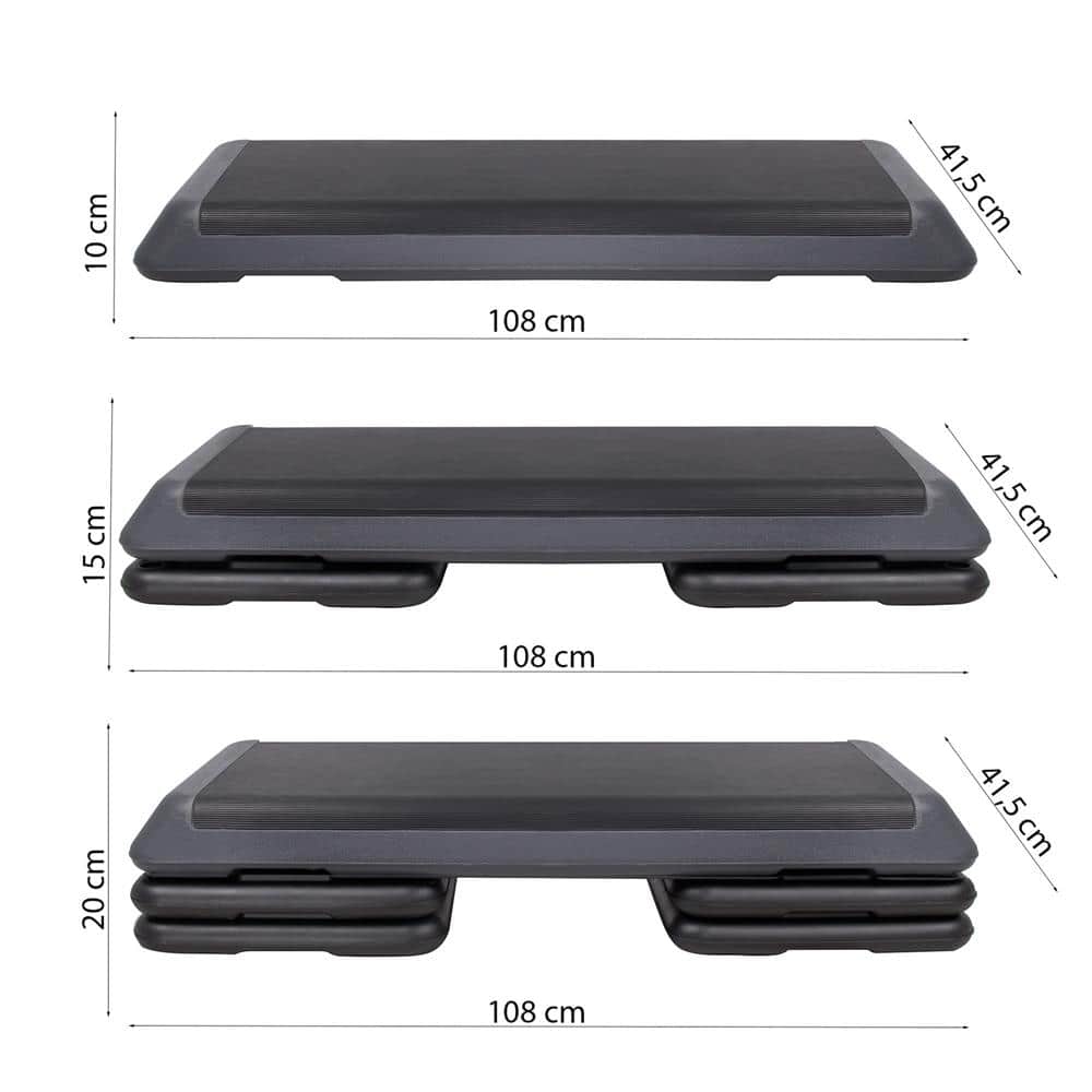 Stepperul il puteti folosi atat la domiciliu cat si la sala de antrenament. Suprafata moale dar stabila precum si faptul ca datorita picioarelor inaltimea este reglabila la 3 nivele il face ideal pentru exercitii de tip coregrafic pe ritmul muzicii cum sunt cele aerobice sau fitness, precum si cele de formare si tonifiere musculara cum sunt cele de bodybuilding. Utilizand produsul puteti mari intensitatea si eficacitatea exercitiilor de concentrare si coordonare a intregului corp intarind muschii coapselor si gambelor dar tot atat de bine si cei ai bratelor, pieptului si spatelui daca executati de ex. flotari. Caracteristici: Trei niveluri de inaltime: 10cm / 15cm / 20cm Latime: 108 cm Adancime: 41,5 cm Sarcina: 350 kg Material: PP In plus: suprafata anti-alunecare, tampoane de cauciuc sigure pe partea inferioara – Robust si durabil- Reglabil pe inaltime- Varietate suficienta de- Sigur – baza anti-alunecare – Modeleaza silueta- Imbunatateste fitness-ul si coordonarea- Constructie usoara- Usor de depozitat si transportat