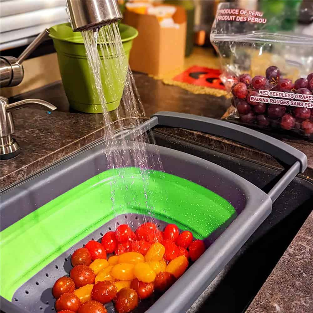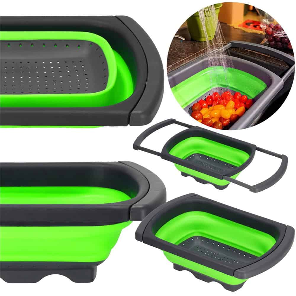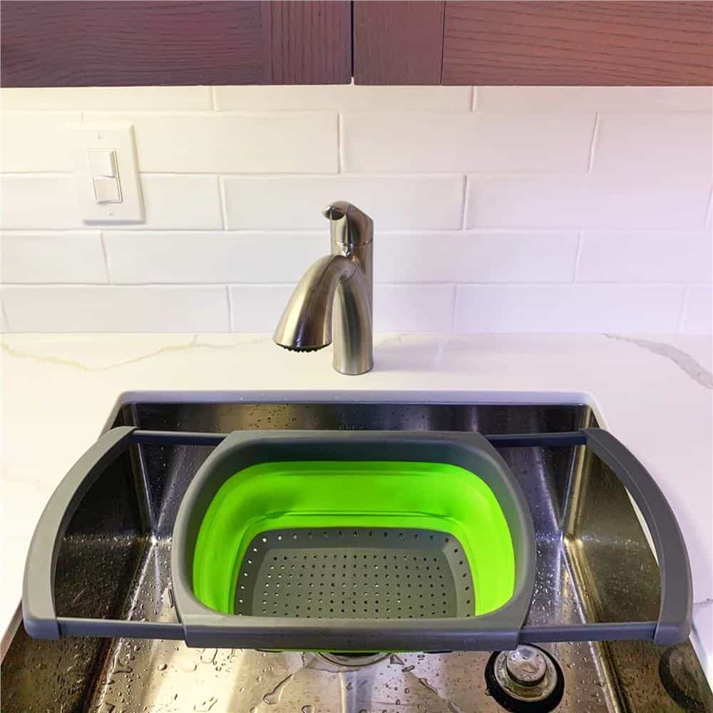 Strecuratoare pliabila pentru chiuveta, din plastic si silicon, brate extensibile, lungime 38-60cm Mob360
