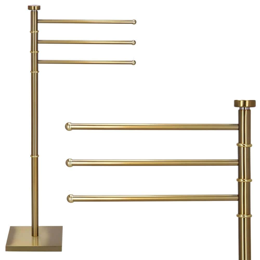 Suport cuier pentru prosoape cu 3 brate, inaltime 86cm, auriu lucios Mob360