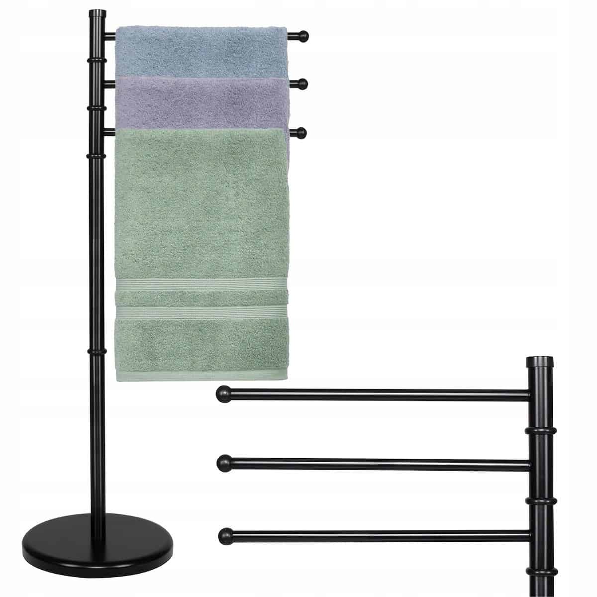 Suport cuier pentru prosoape cu 3 brate, inaltime 86cm, negru Mob360