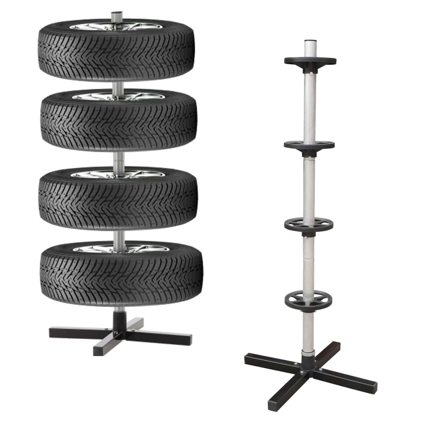 Suport depozitare anvelope 4 roti, cadru metalic, 45x45x105 cm, capacitate 100 kg, negru Mob360