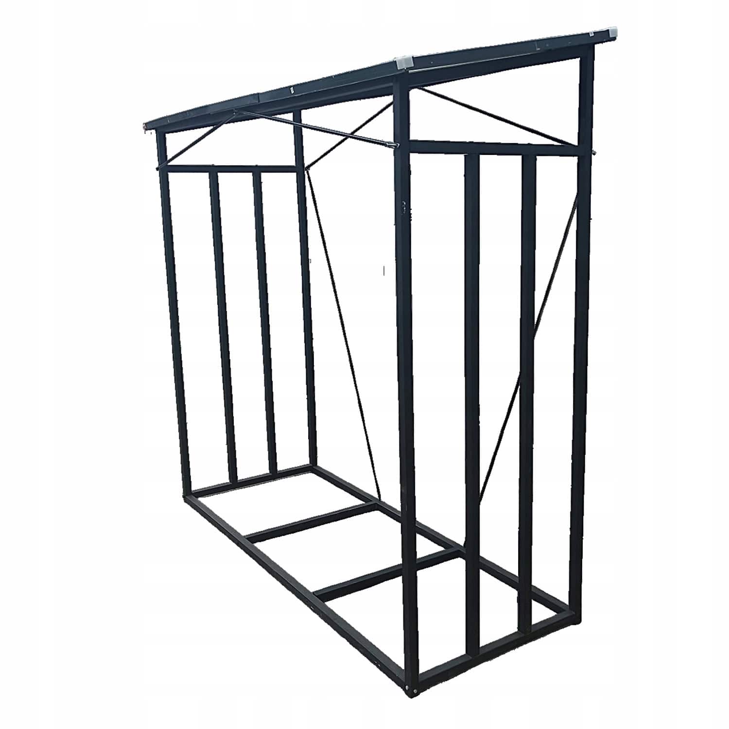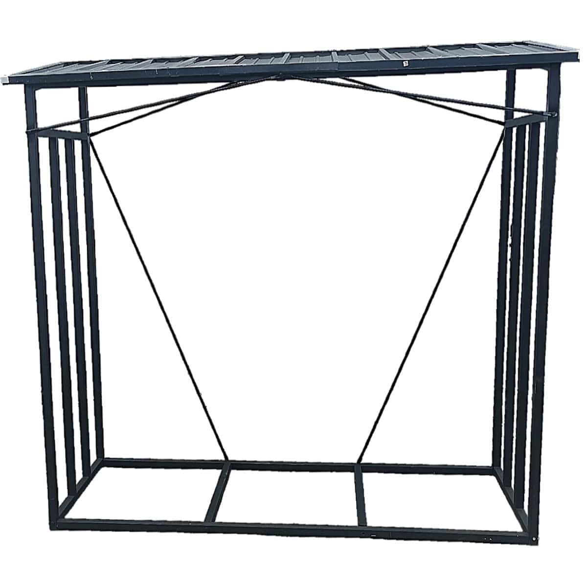 Suport depozitare lemne de foc cu acoperis ondulat, structura metalica, 185x70x185 cm, negru Mob360