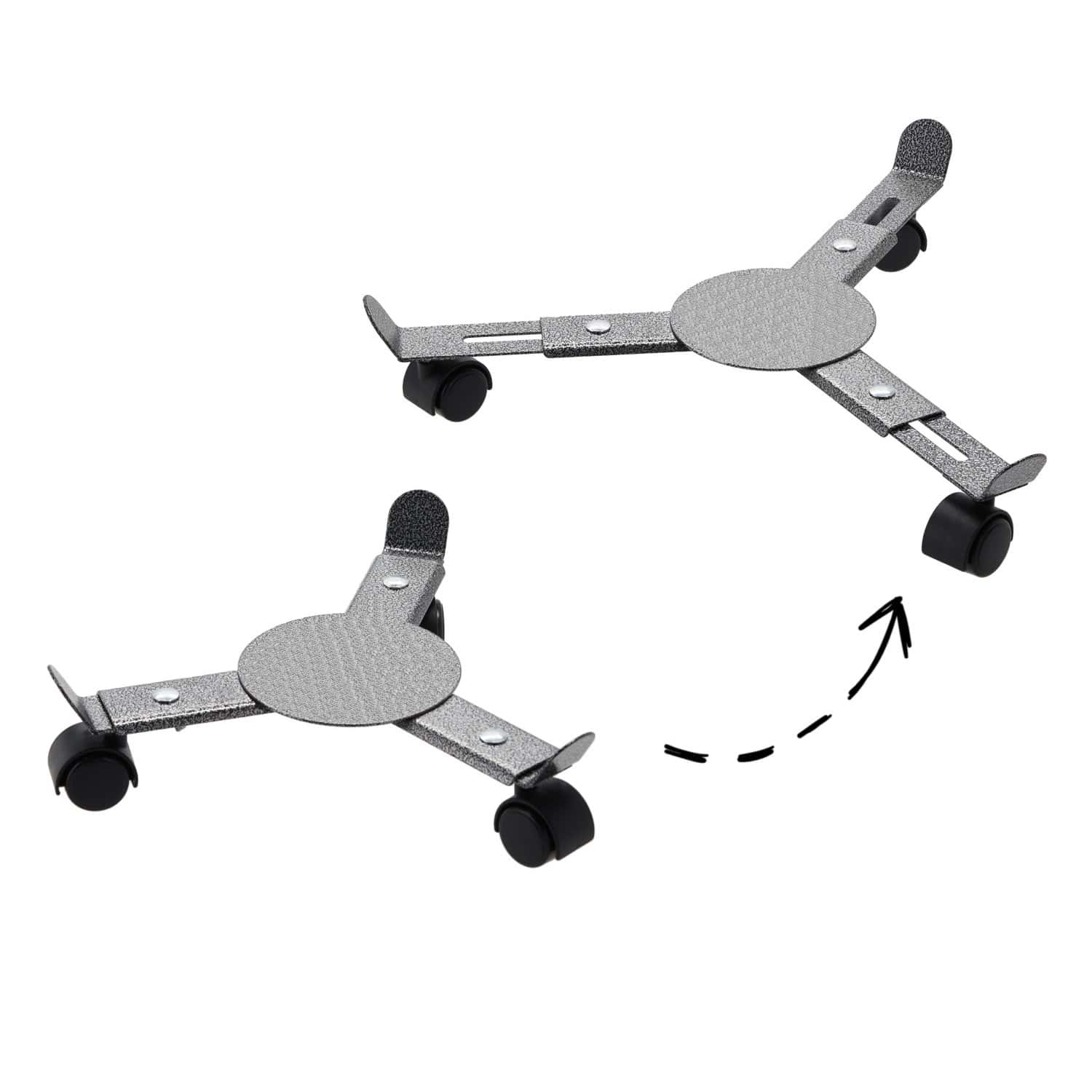 Suport ghiveci cu roti pentru plante, diametru reglabil 22-30 cm, inaltime 7 cm, negru Mob360