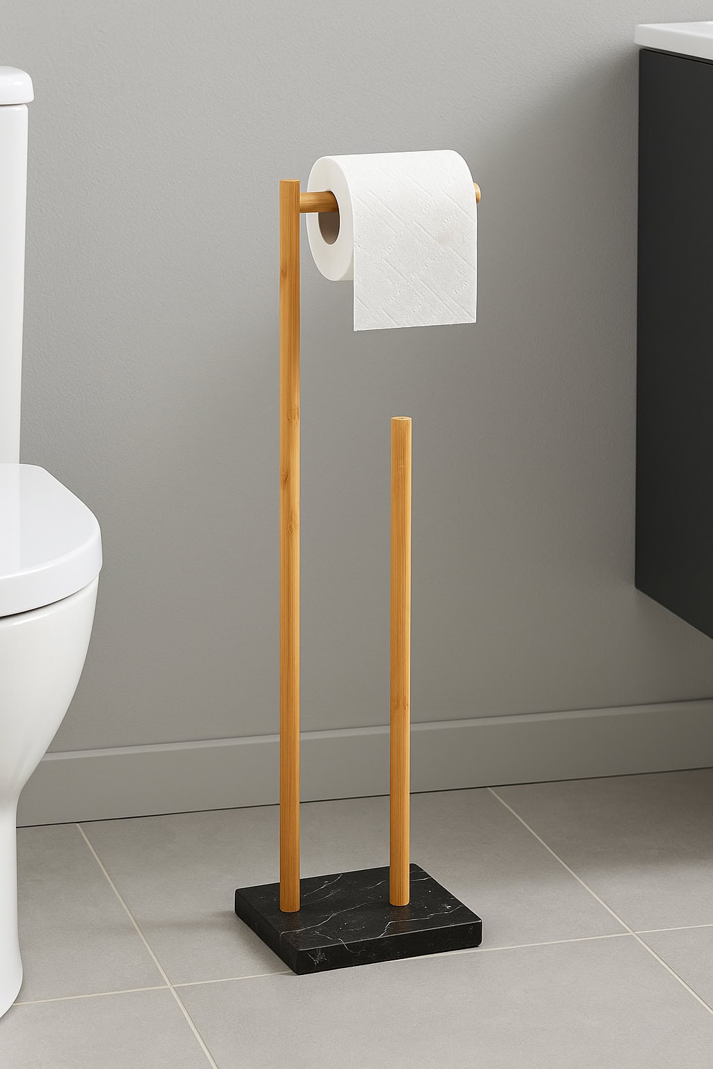 Suport hartie igienica 5Five Lea cu spatiu depozitare, bambus, 22x18x78 cm, negru si maro Mob360 – produs disponibil în magazinul Mob360.