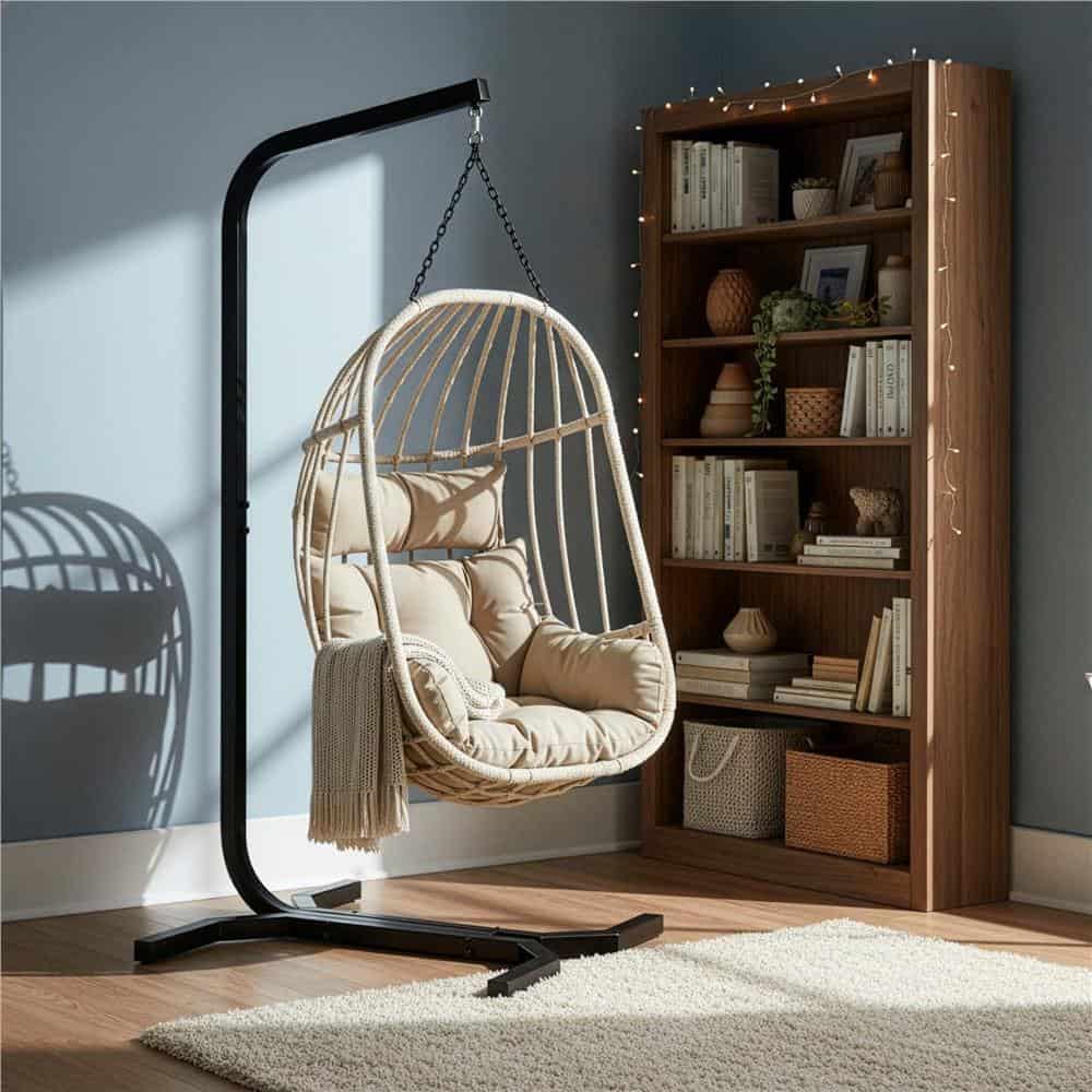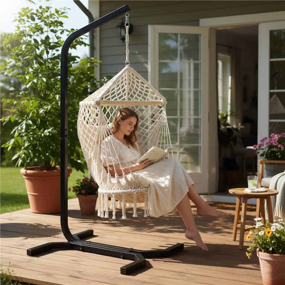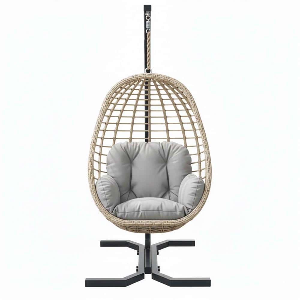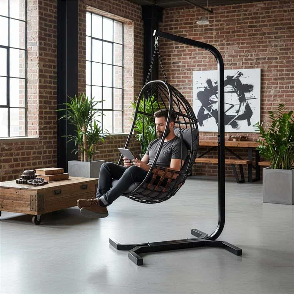 Suport leagan tip cuib sau hamac suspendat, cadru otel, maxim 180 kg, 92x92x205 cm, negru Mob360
