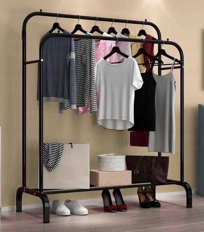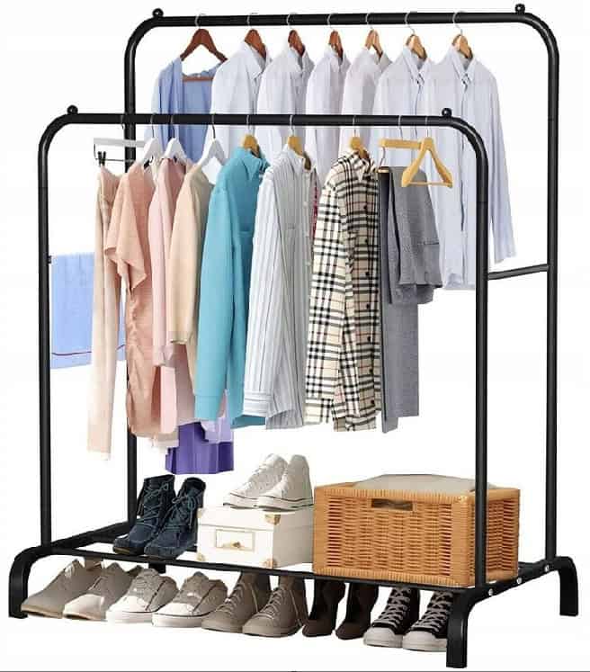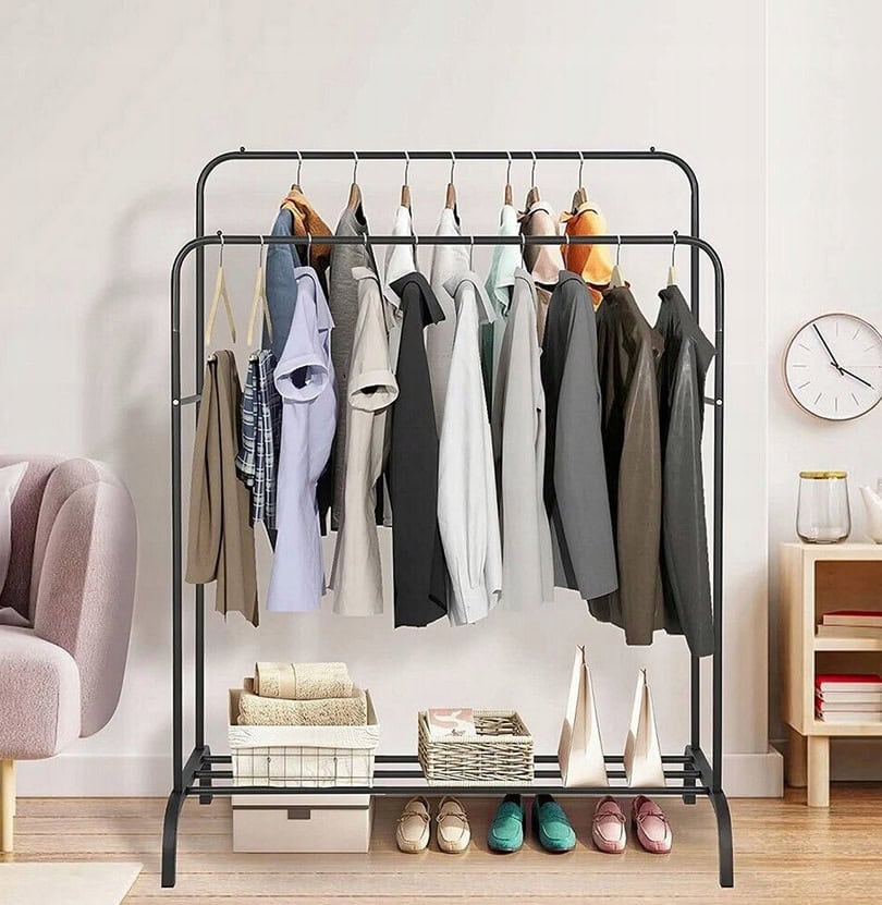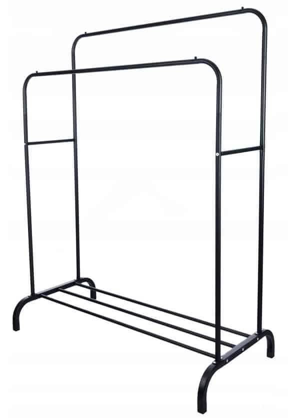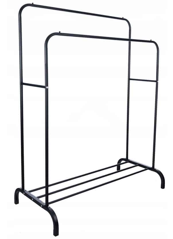 - Suport metalic pentru haine 110x55x145 cm, cu bara dubla si raft pentru incaltaminte, negru Mob360 – produs disponibil în magazinul Mob360.