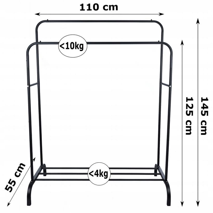 Suport metalic pentru haine 110x55x145 cm, cu bara dubla si raft pentru incaltaminte, negru Mob360