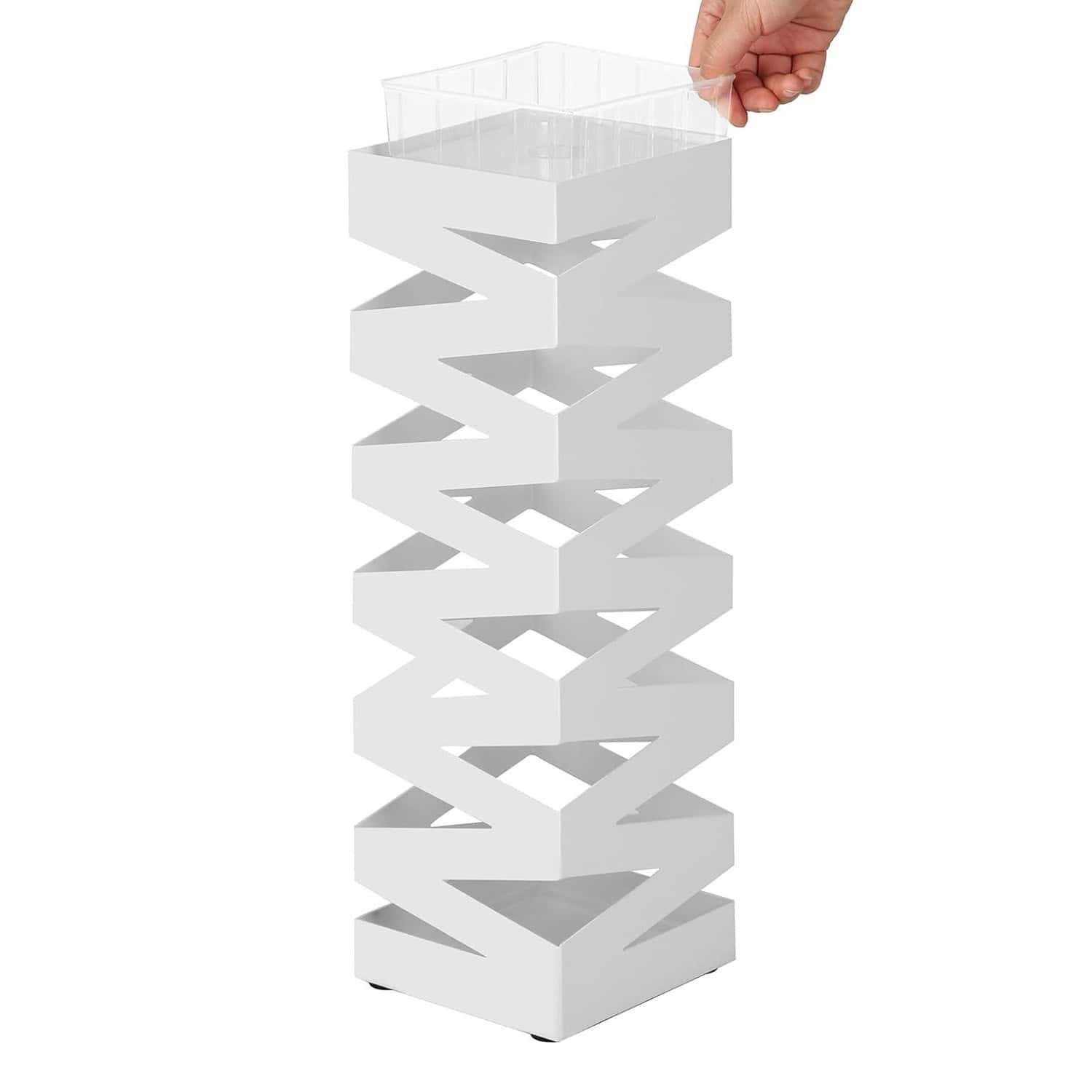 Suport metalic pentru umbrele, cu carlige si tava de picurare, 15x15x49cm, alb Mob360