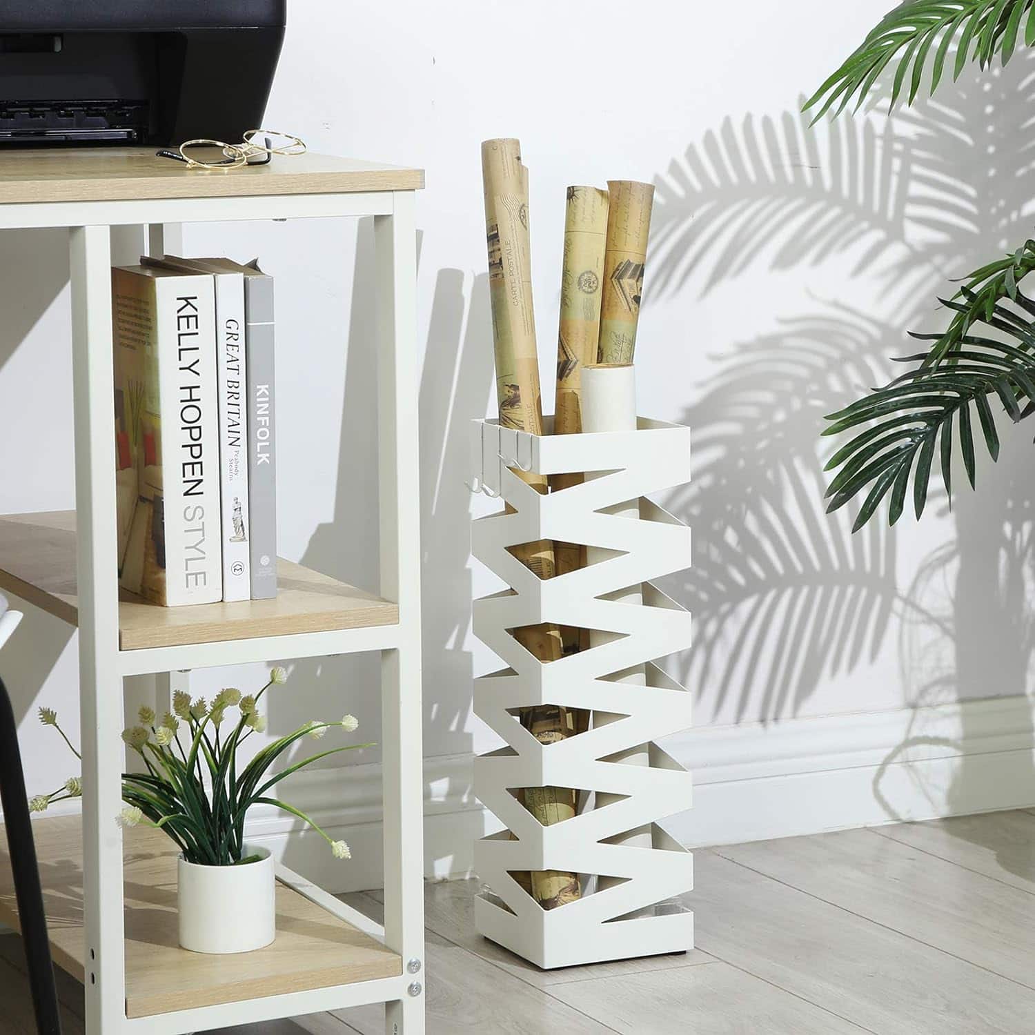 Suport metalic pentru umbrele, cu carlige si tava de picurare, 15x15x49cm, alb Mob360 – produs disponibil în magazinul Mob360.