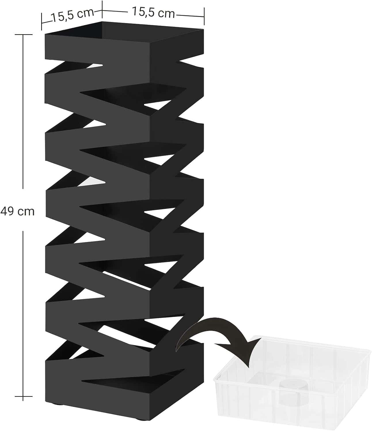 Suport metalic pentru umbrele, cu carlige si tava de picurare, 15x15x49cm, negru Mob360