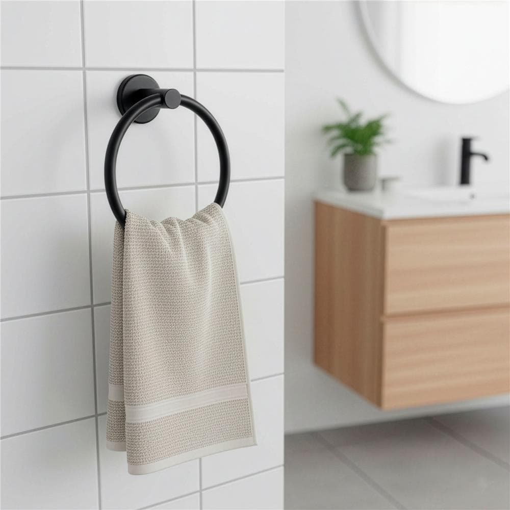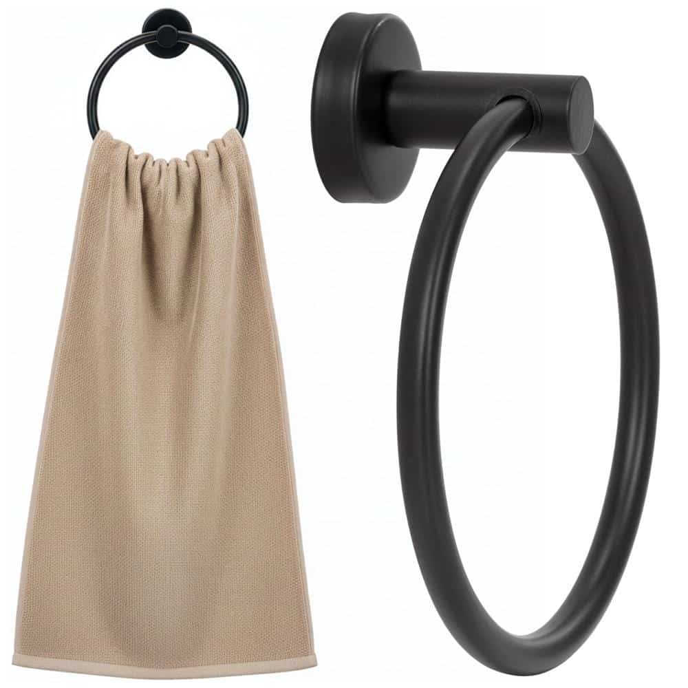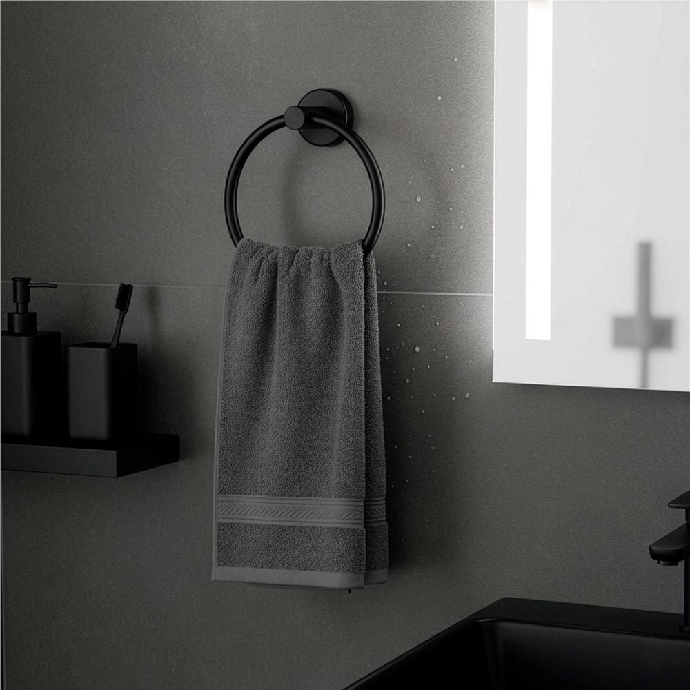 Suport metalic tip inel pentru prosop, inox cu finisaj mat, diametru 17 cm, accesorii montaj incluse, negru Mob360