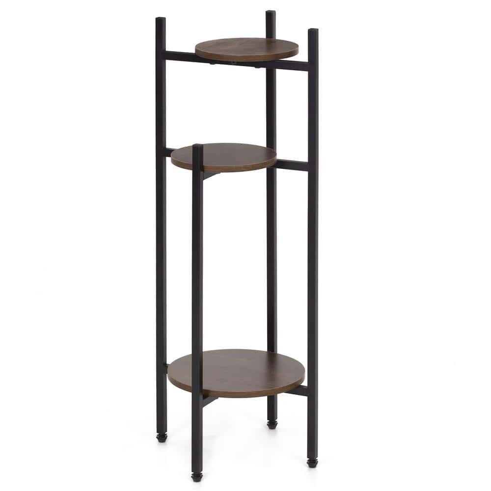 Suport pentru flori, rotund cu 3 polite, structura metalica si MDF, 32x32x81 cm, negru Mob360