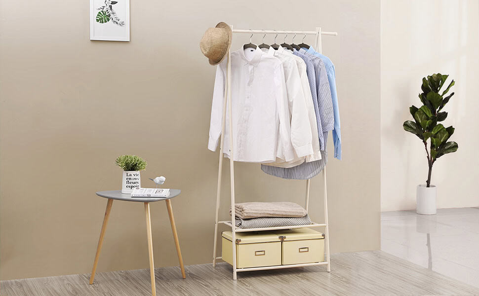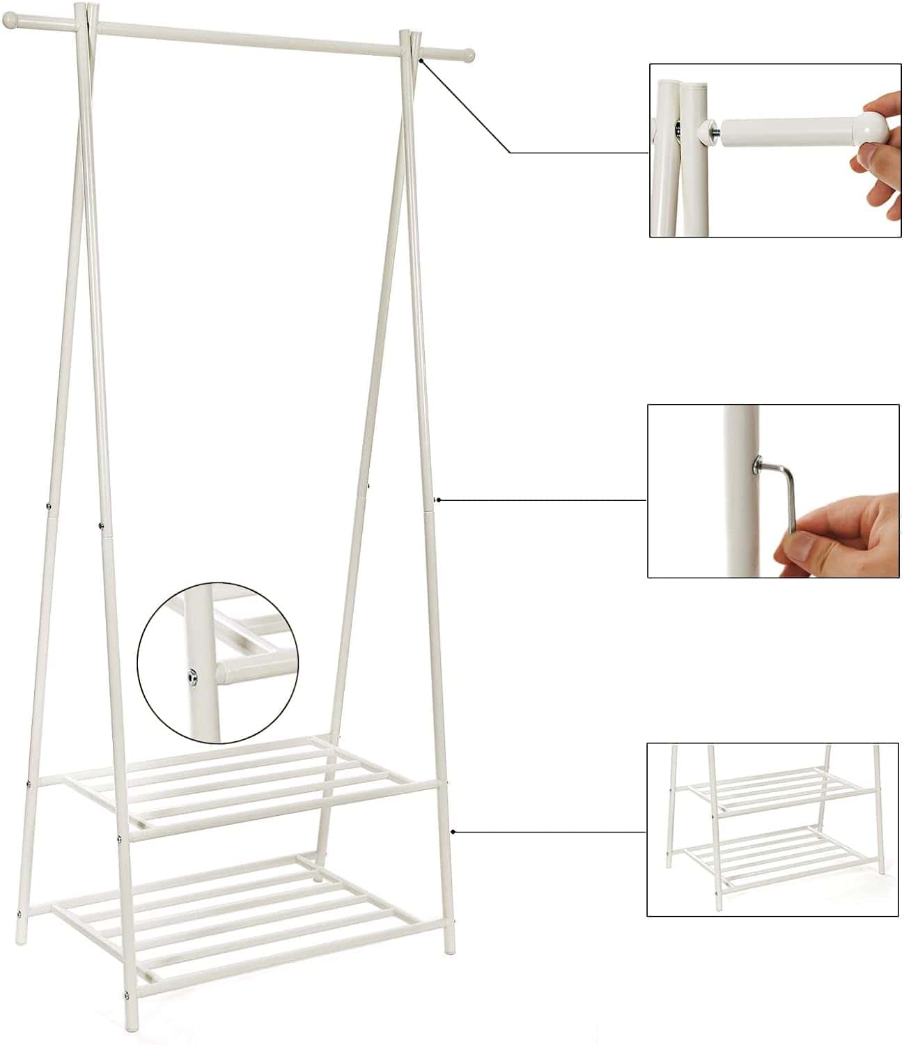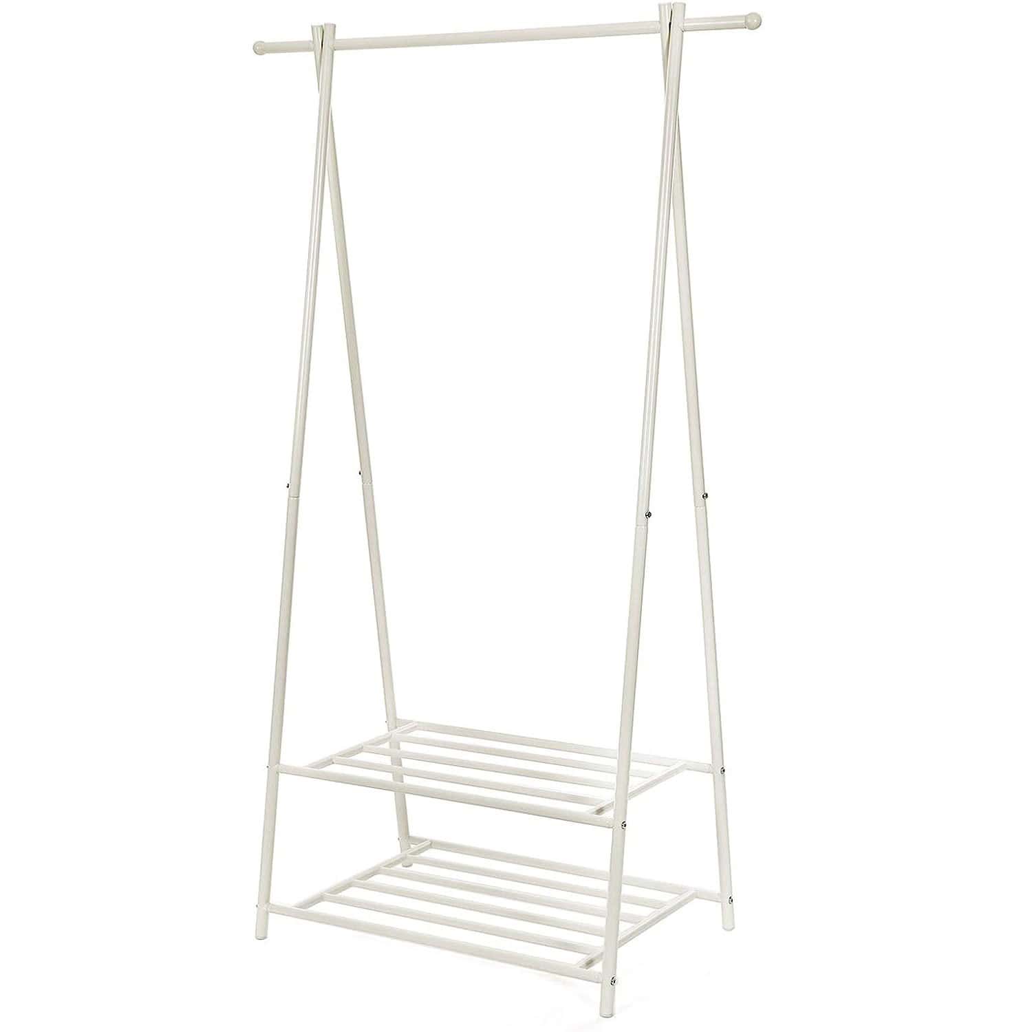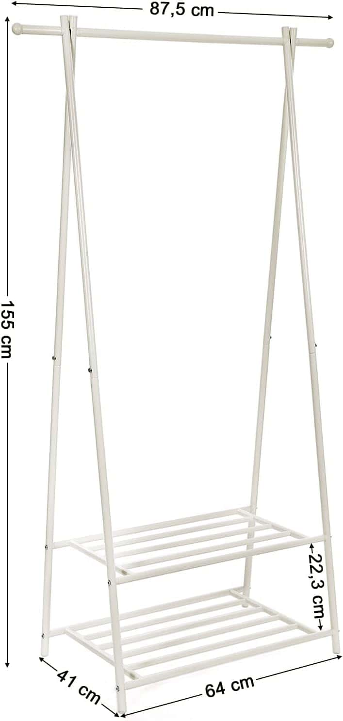 Suport pentru haine, cu raft depozitare pe 2 niveluri, cadru metalic, 88x41x155cm, alb Mob360 – produs disponibil în magazinul Mob360.