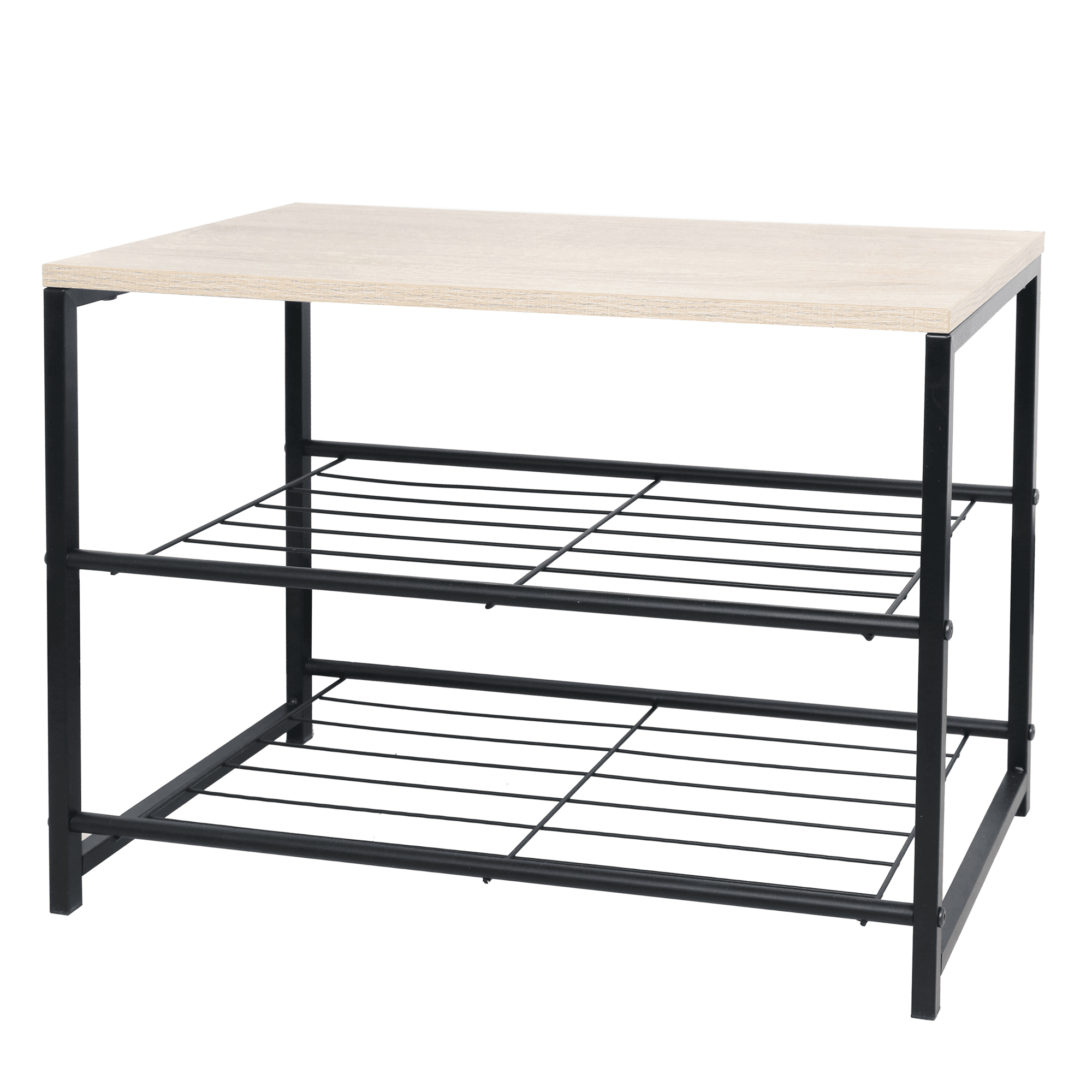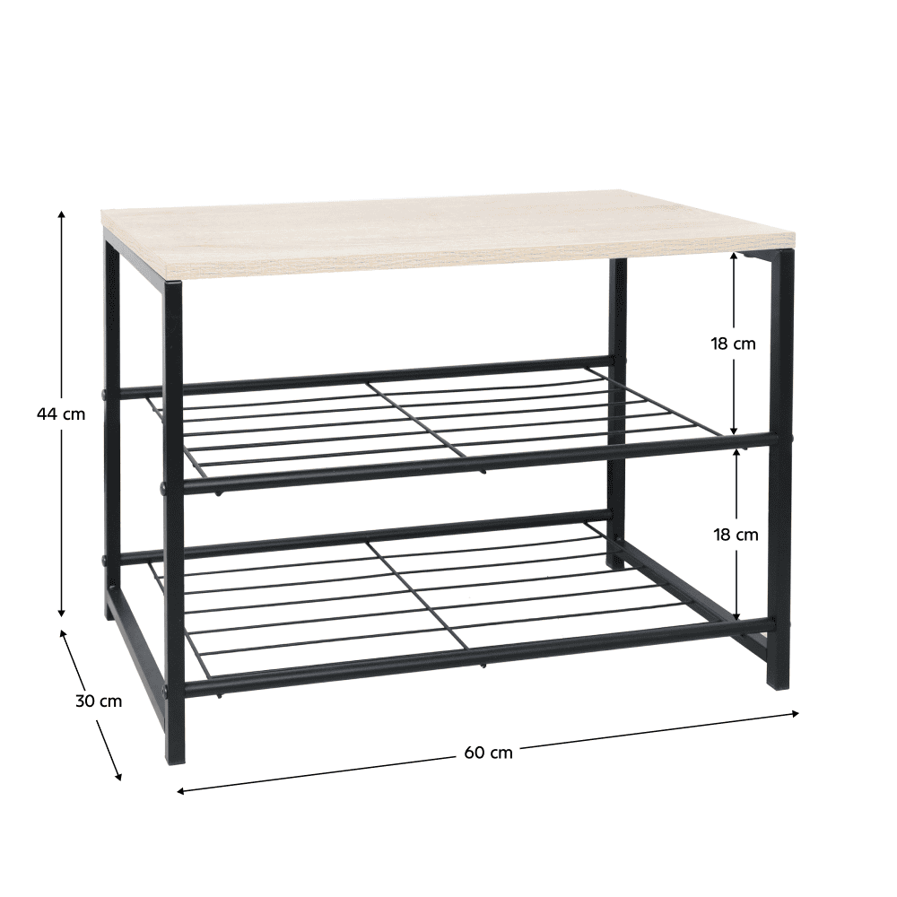 Suport pentru pantofi, 2 rânduri, negru/natural, TADEO