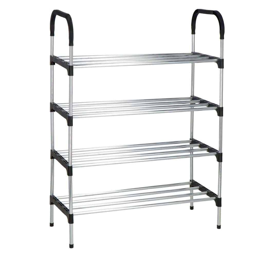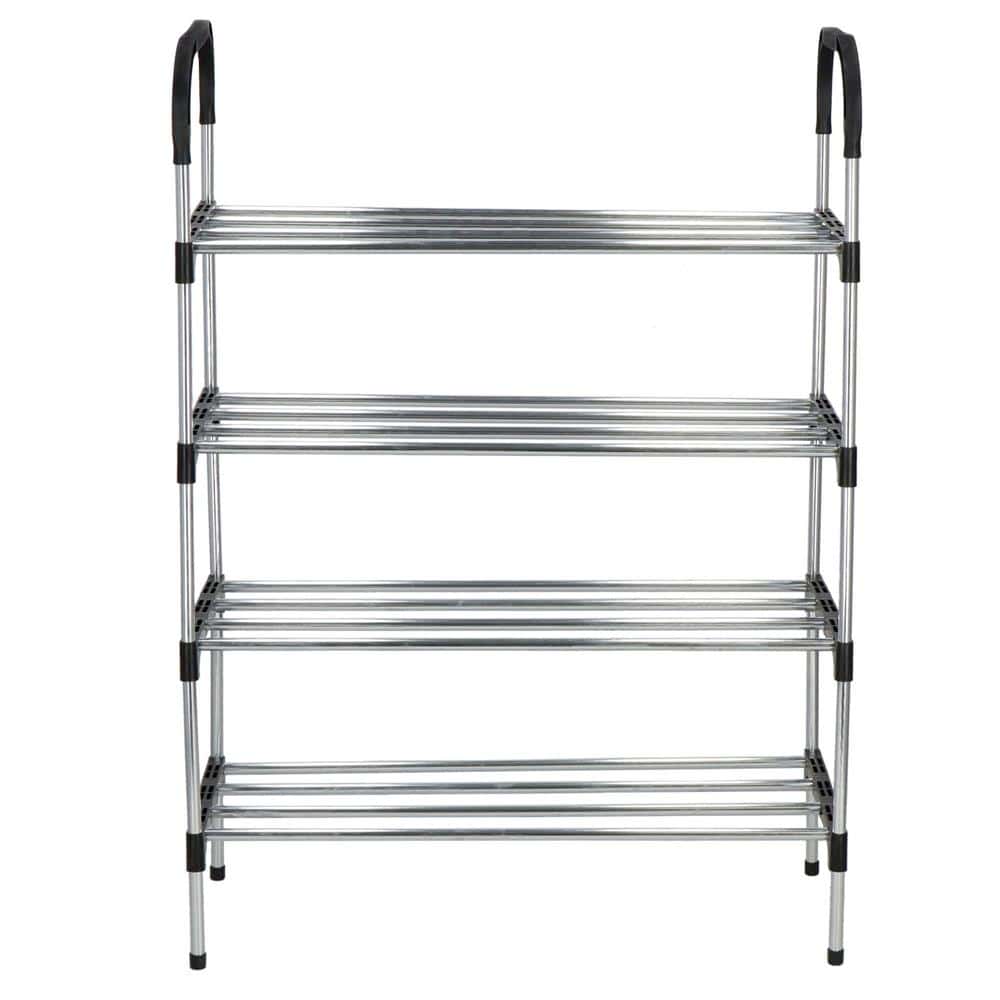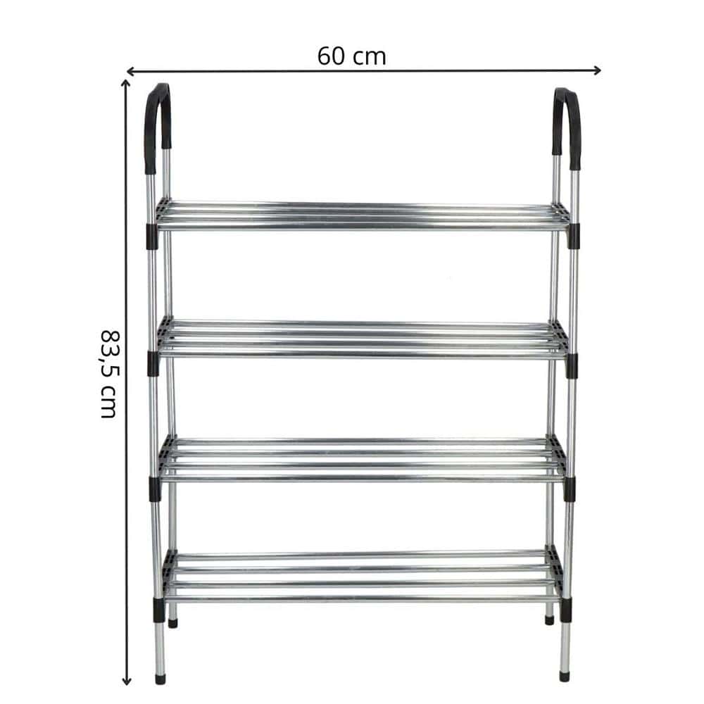 Suport pentru pantofi, 4 rafturi, cadru metalic, 84x28x60cm, negru si argintiu Mob360
