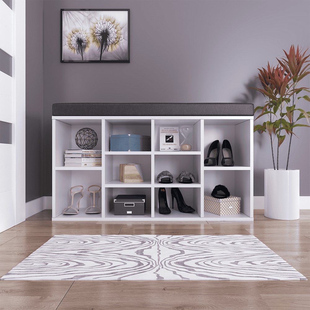 Suport pentru pantofi cu bancă, albă, FADDY TIP M 1779