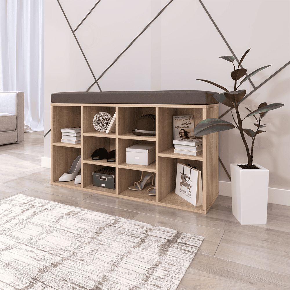 Suport pentru pantofi cu bancă, stejar sonoma, FADDY TIP M 1781