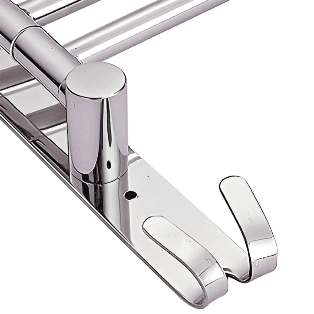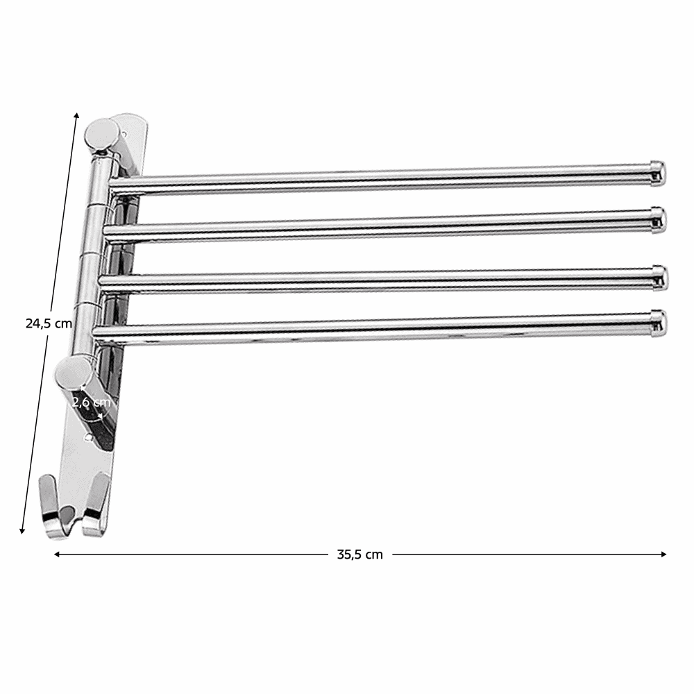 Material: otel inoxidabil Culoare: argintie Dimensiuni (lxAxh): 35,5×2,6×24,5 cm Cârlig practic 4-braţe Lungime braţe: 32 cm Distanţa dintre braţe: 2 cm Braţe pivotante De perete Portanţă: 5 kg Livrat asamblat