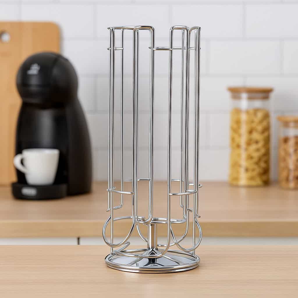 Suport rotativ capsule 5Five pentru Dolce Gusto, 24 spatii, otel cromat, 12×32 cm, argintiu Mob360 – produs disponibil în magazinul Mob360.