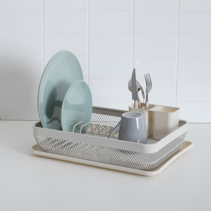 Specificatii tehnice Marca: 5Five Model: Mayaj Culoare: Bej Dimensiuni produs: L. 43 x P. 32 x H. 13,5 cm Material: Otel si polipropilena Scurta descriere Compact si modern, suportul de vase Mayaj de la 5Five este ideal pentru uscarea eficienta a vaselor dupa spalare. Realizat din otel rezistent si plastic durabil, include tava de scurgere si design simplu cu finisaj bej neutru, potrivit oricarei bucatarii contemporane. Caracteristici principale 1 nivel generos pentru farfurii si pahare Include tava colectoare detasabila Constructie din otel durabil Plastic rezistent la umezeala Finisaj bej pentru un aspect elegant
