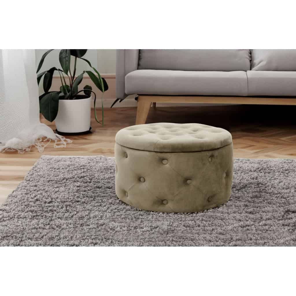 Taburet Alia cu spatiu depozitare, tapitat cu velur, 55×30 cm, bej Mob360 – produs disponibil în magazinul Mob360.